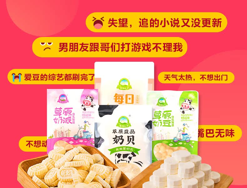 【超市一袋要十几二十】来自内蒙古大草原的特产~益生菌奶贝、小芝酪、草原奶派、夹心奶豆可选,多种口味可挑,满足各路吃货,美味不腻易消化,每一片都是浓缩的精华!宝宝超爱,吃货必囤~