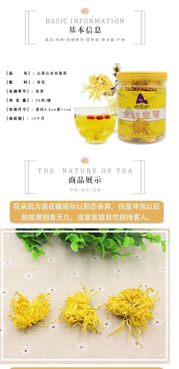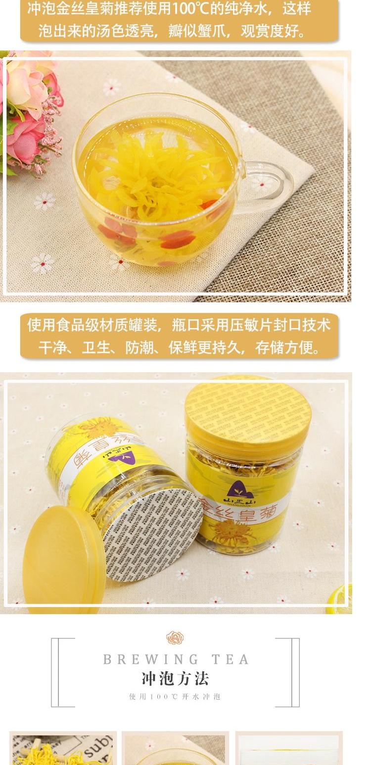 山里山金丝皇菊 菊花茶一杯一朵 黄山徽州大黄菊花草茶罐装约50朵