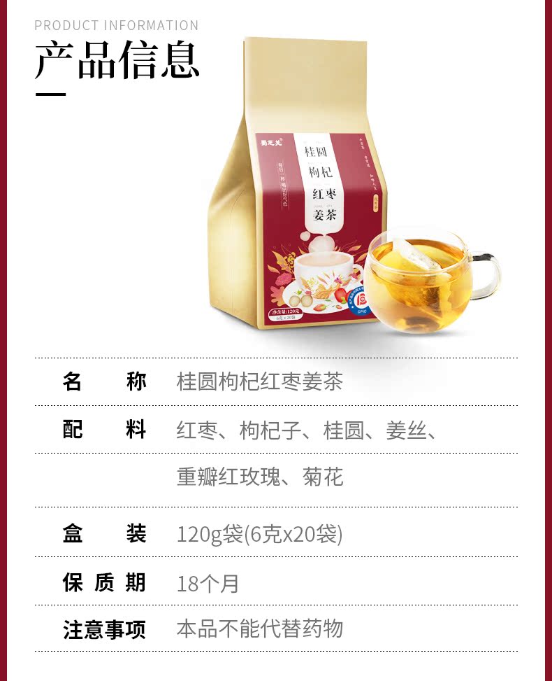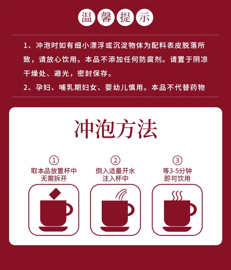 原料的科学配比,真材实料营养更足,无核桂圆肉,果肉饱满甜而不腻,枸杞颗颗精选口感清甜,独立包装便携冲泡,每日一袋喝出健康好气色!【赠运费险】