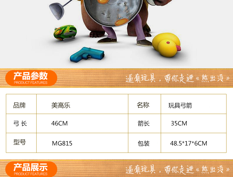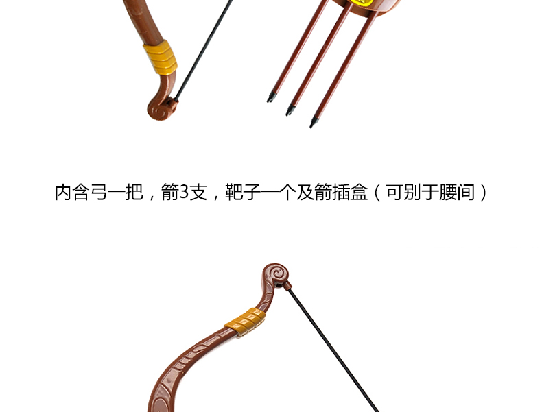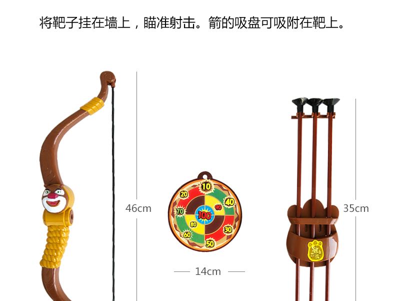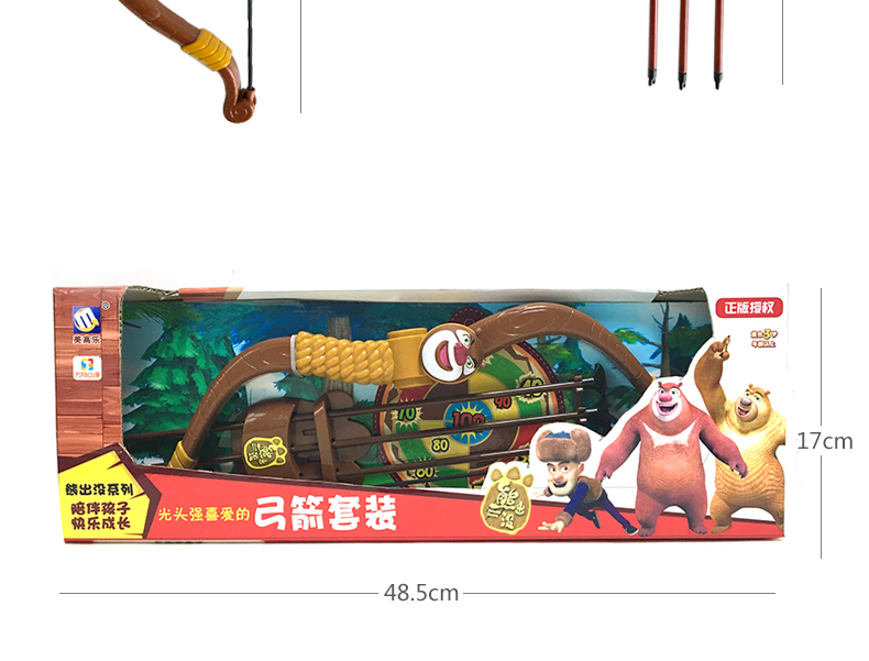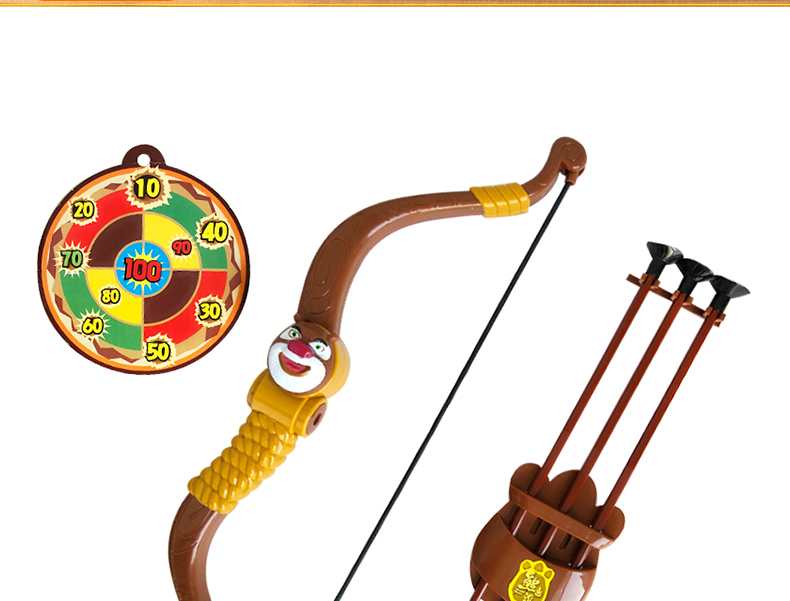 内含弓一把箭3支靶子一个及箭插盒,有助于培养儿童专注力和运动爱好,宝宝超喜欢的光头强系列玩具!运动健身射箭从小锻炼,宝妈们快快下手吧~
