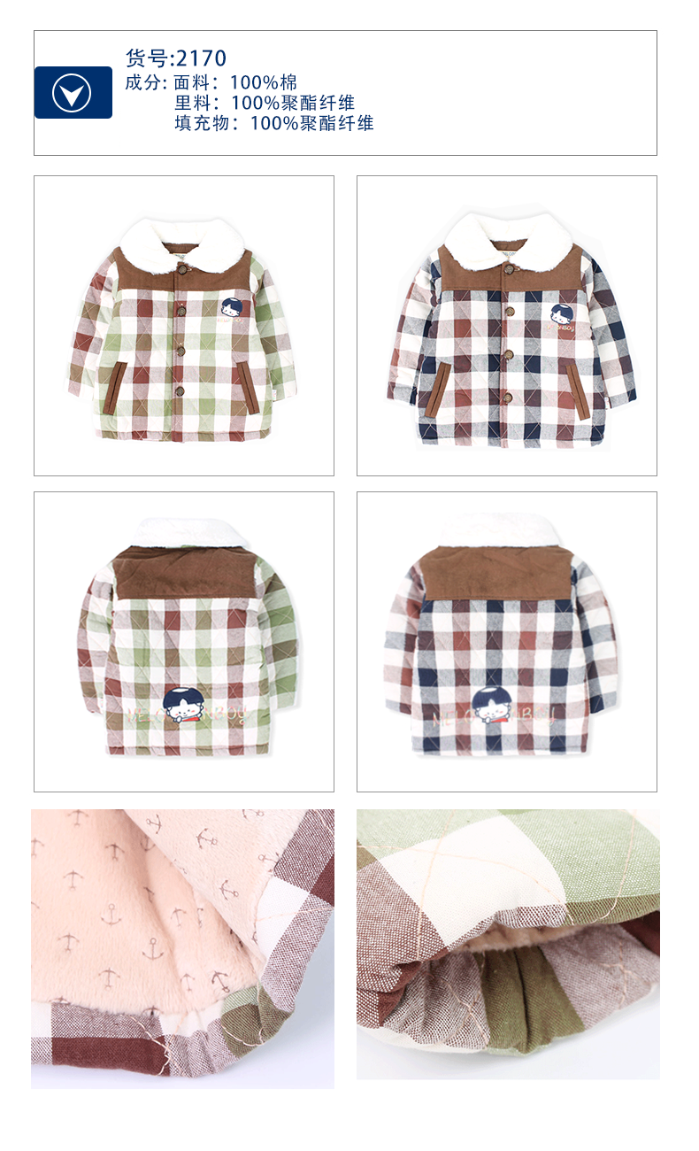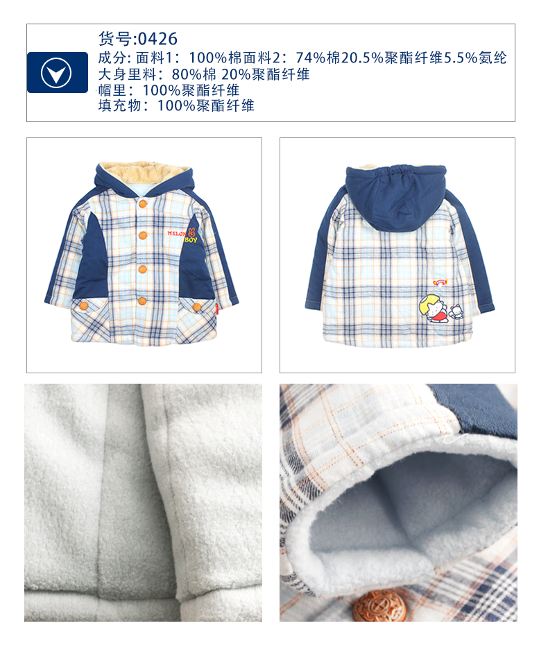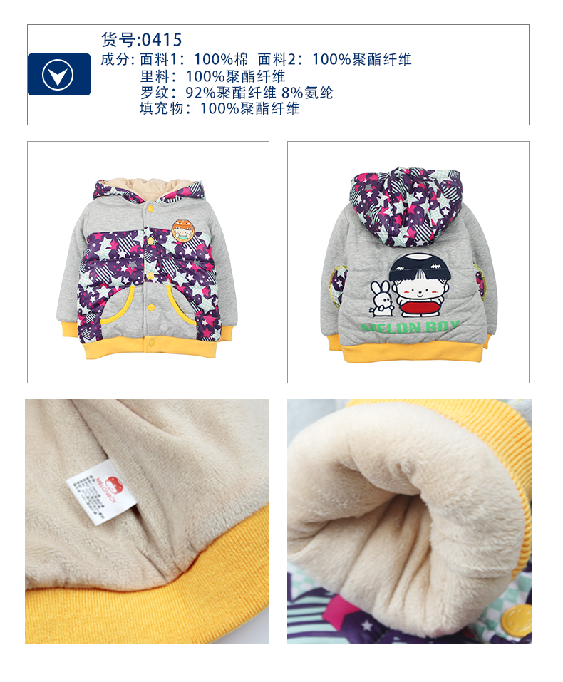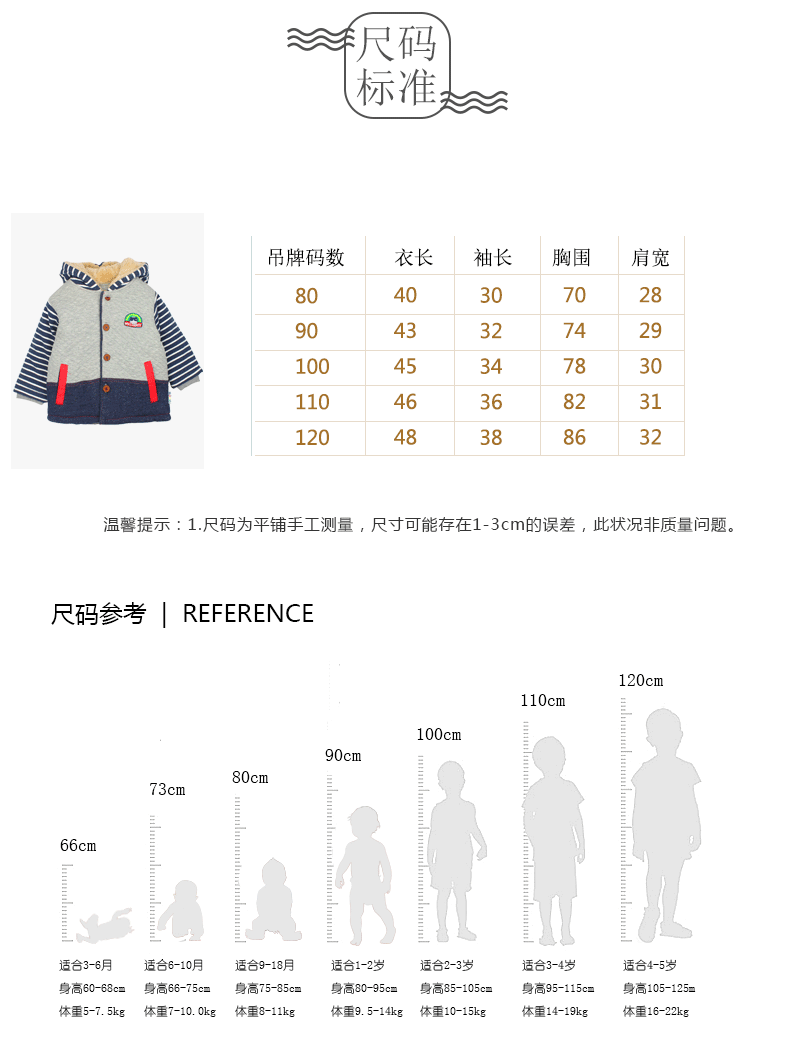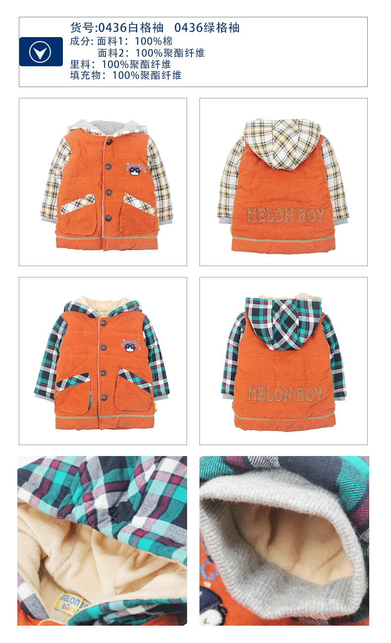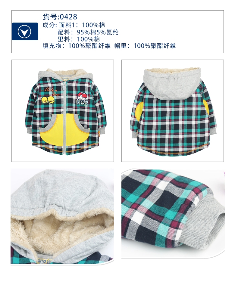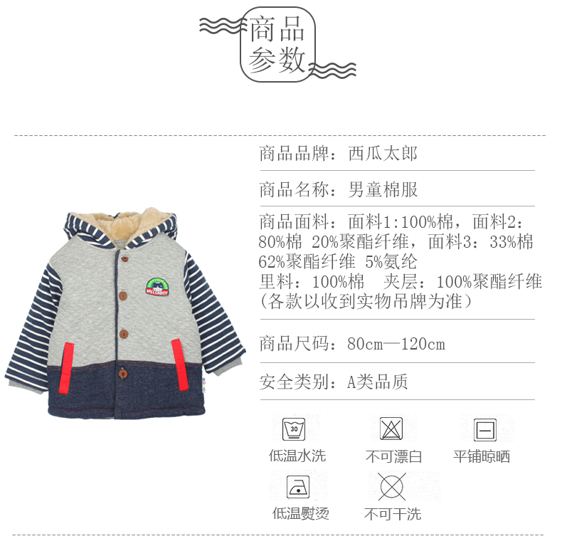 80-120cm多款可选,男童棉衣,衣服很厚实,耐磨,手感柔软舒适,质量很棒,保暖效果很好,款式时尚大方,给家里的小帅哥来一件!!