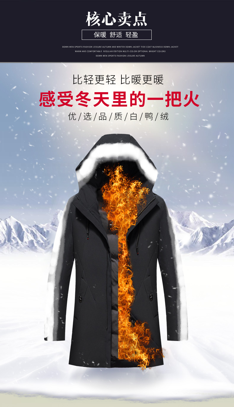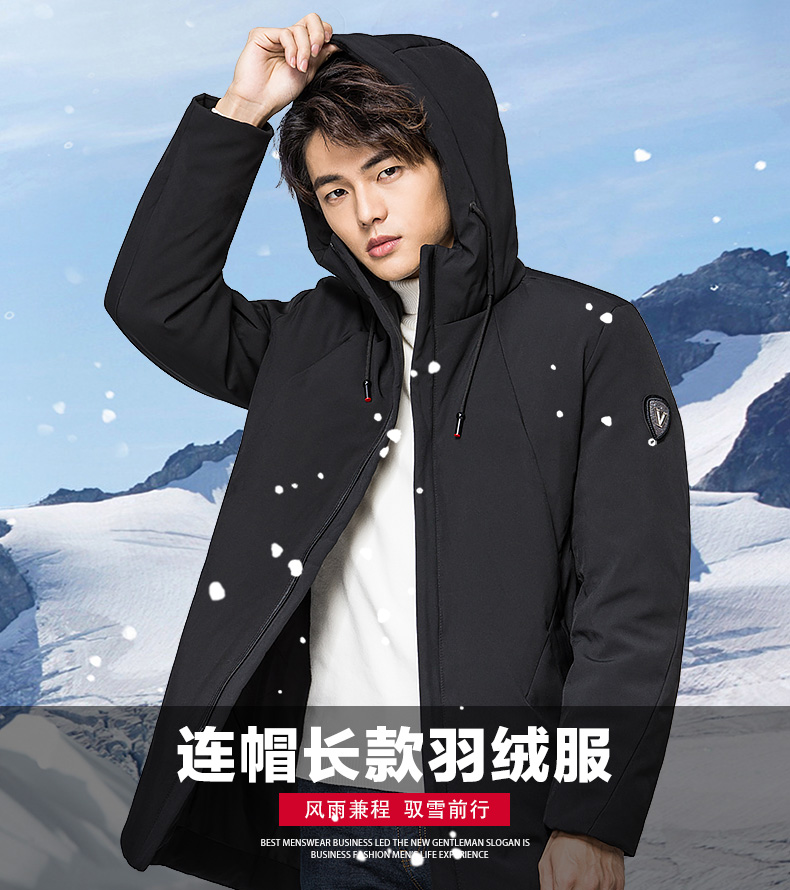 雅鹿羽绒服男潮冬中长款连帽男士反季羽绒服加厚潮流保暖外套帅气