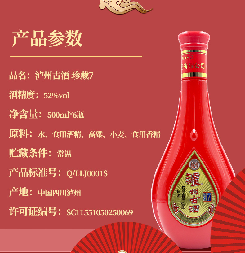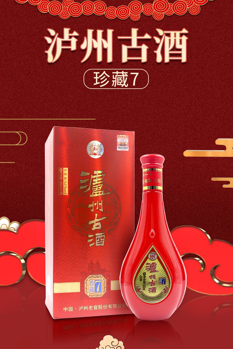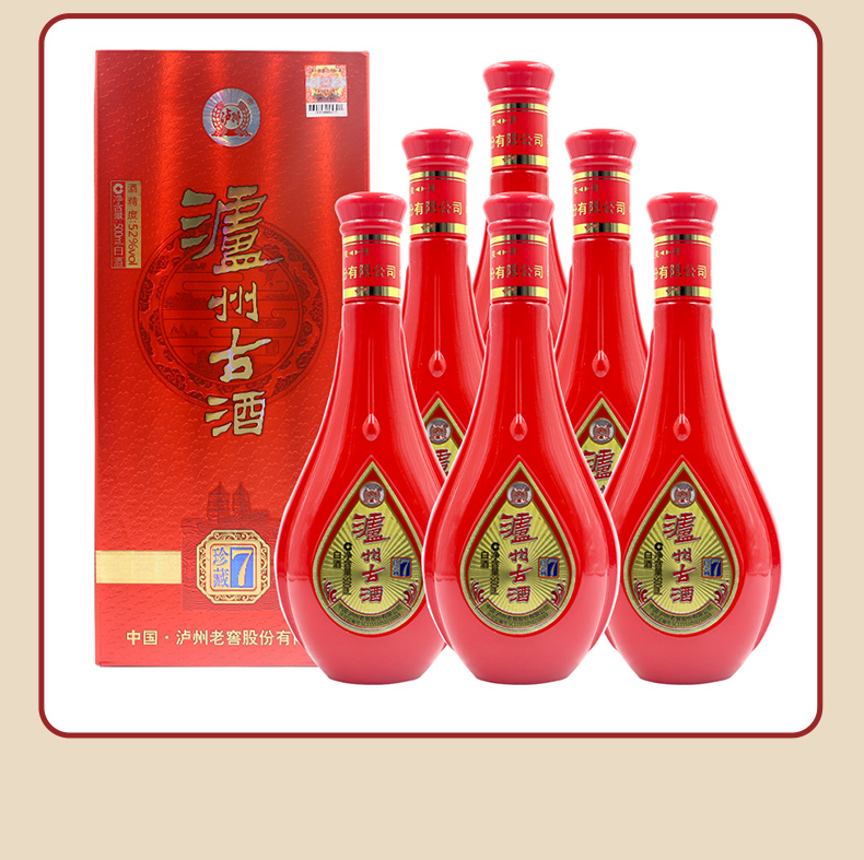 泸州老窖泸州古酒珍藏7白酒52度500ml*6瓶整箱装婚宴聚会团圆宴请