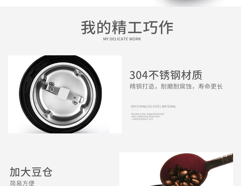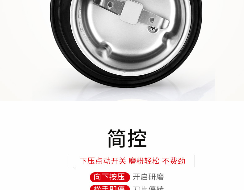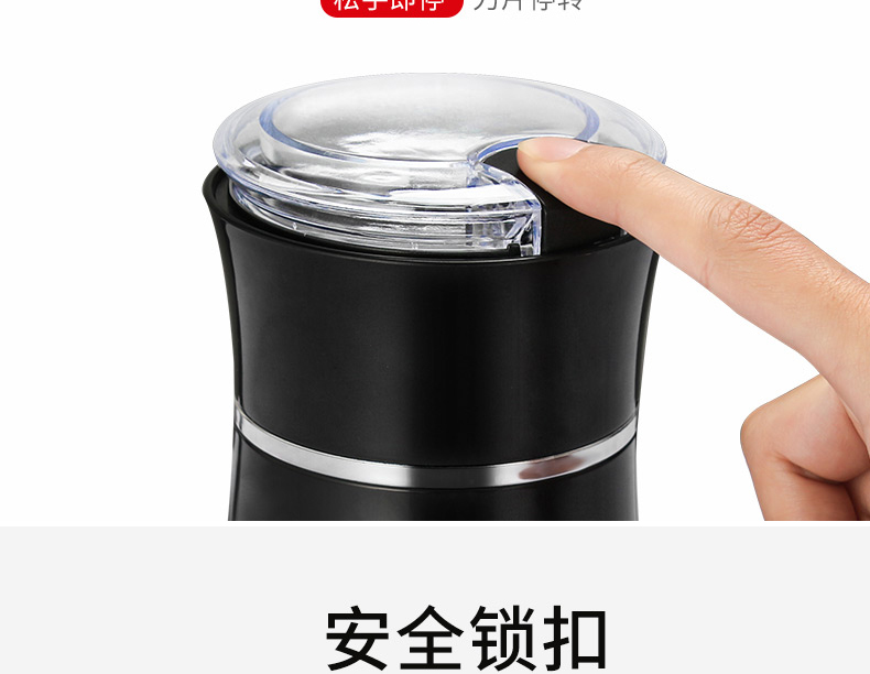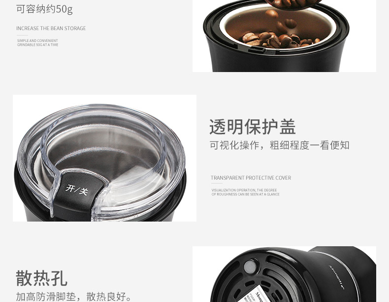 电动咖啡研磨机,纯铜电机,持续研磨不发热,透明上盖,自由控制,按钮式开关控制,造型小巧,防滑易握,研磨粗细可控制,送运费险。
