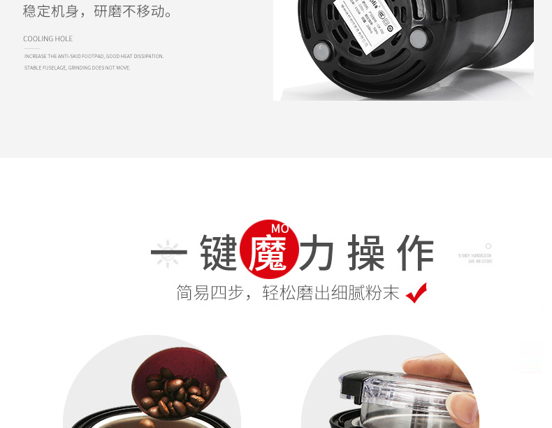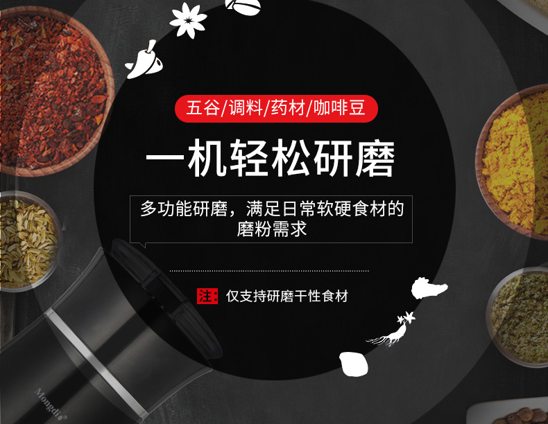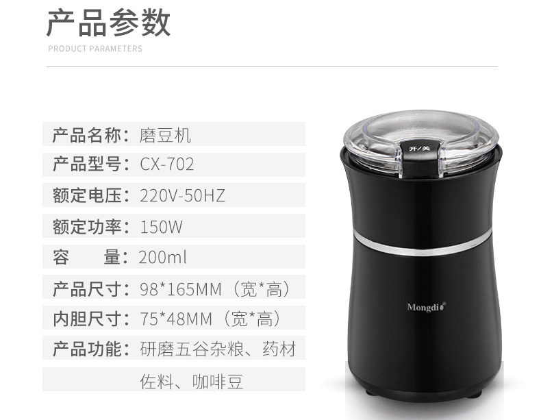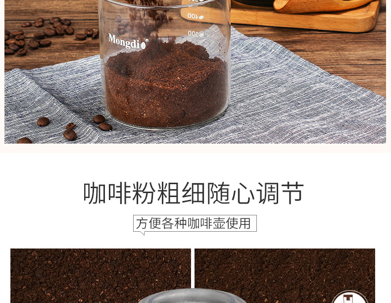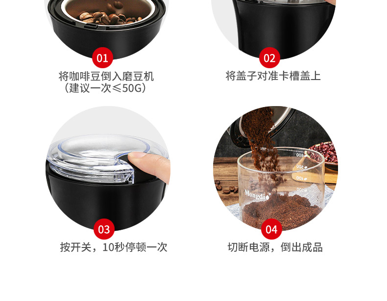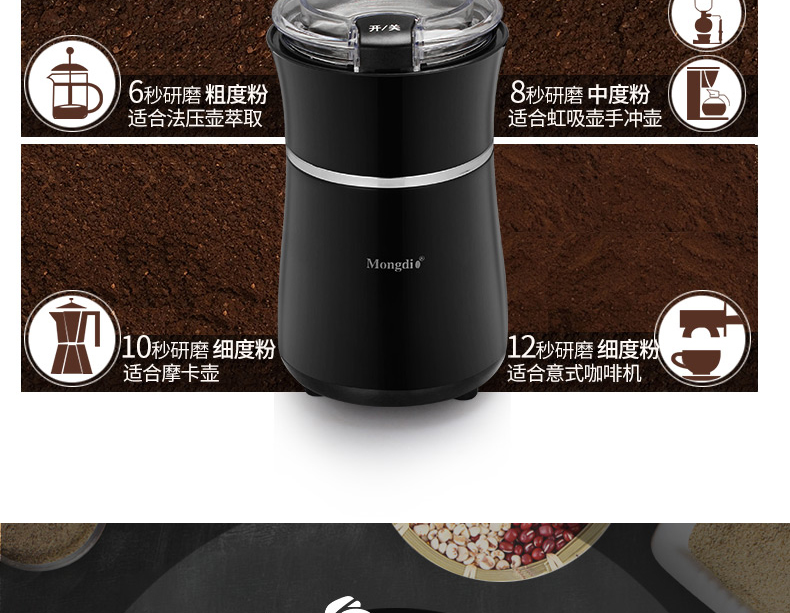 Mongdio磨豆机电动咖啡豆研磨机 家用小型自动磨咖啡机中药磨粉机