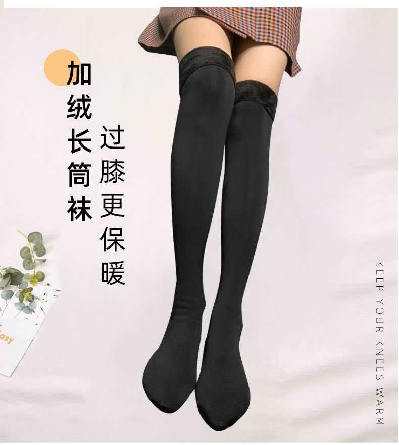 雪地袜子女秋冬加绒加厚中筒小腿过膝肉肤色光腿神器男女可乐裤袜