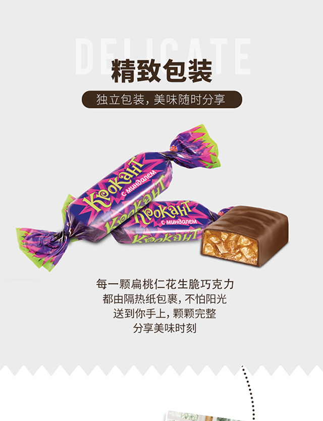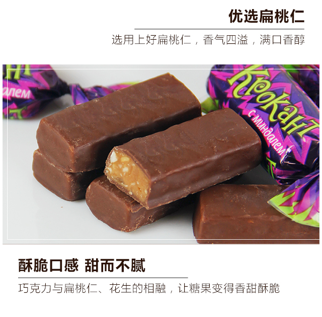 俄罗斯原装进口,浓浓巧克力+细腻软糯松露土豆泥,香脆夹心花生,口口醇香,丝丝顺滑,,香浓幼滑,层层酥脆,香甜美味,每一颗都让你享受俄罗斯风情,美美的吃上一口整个人仿佛都融化了~【赠运费险