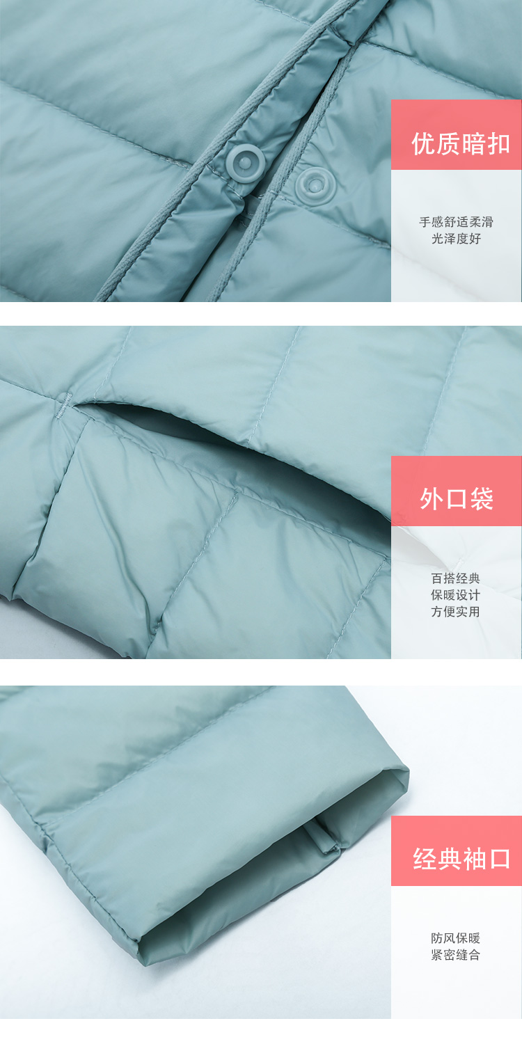 精选白鸭绒,反季促销,多颜色可选,不钻绒不跑绒,百搭时尚,简约利落,有文艺范。