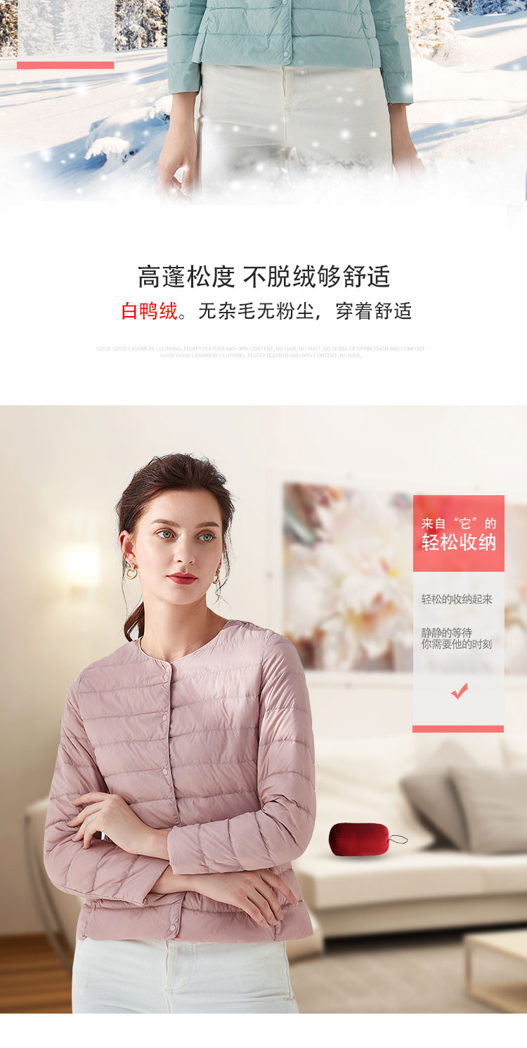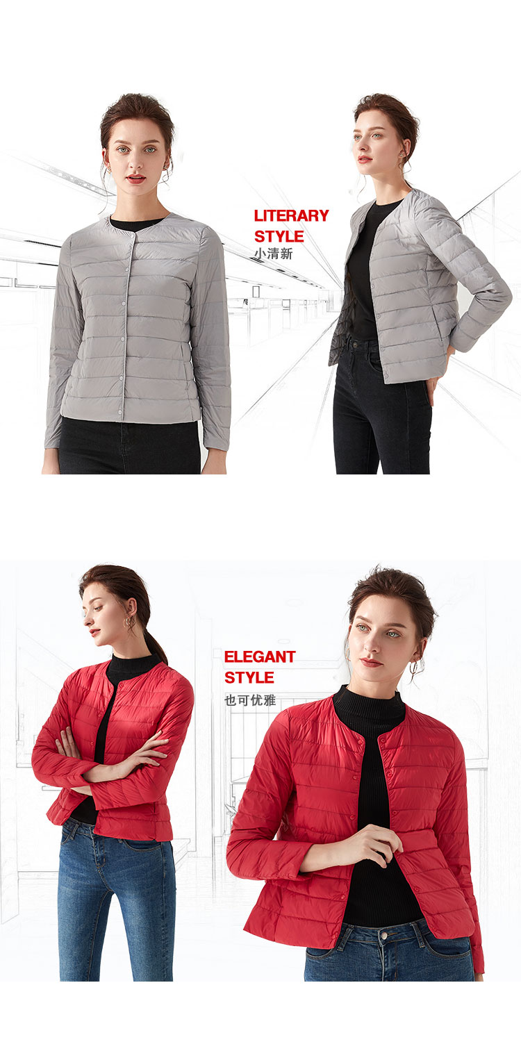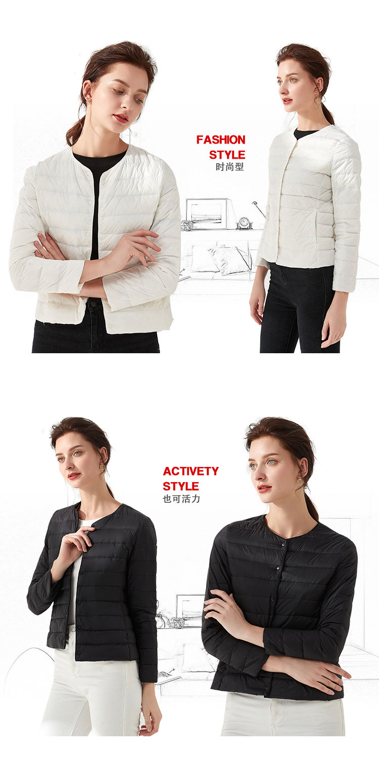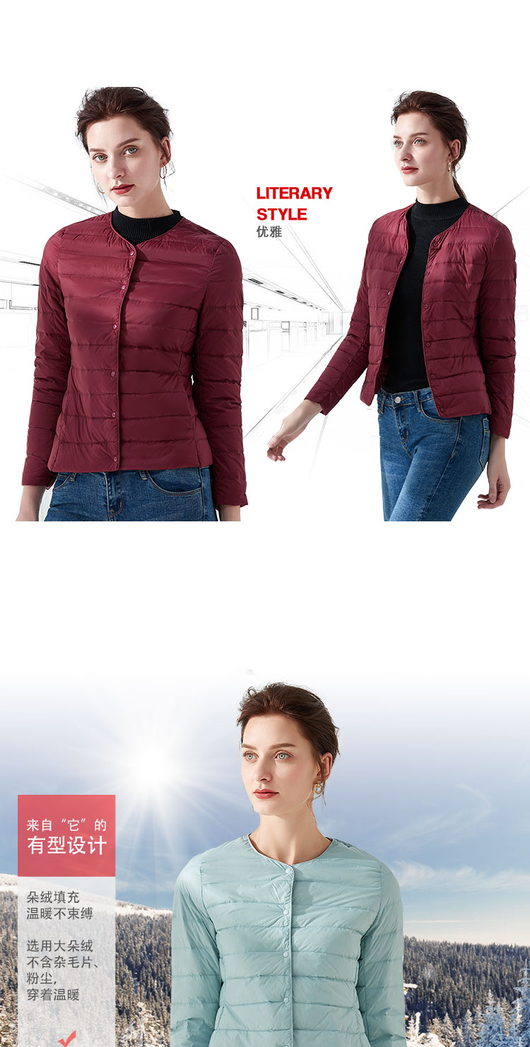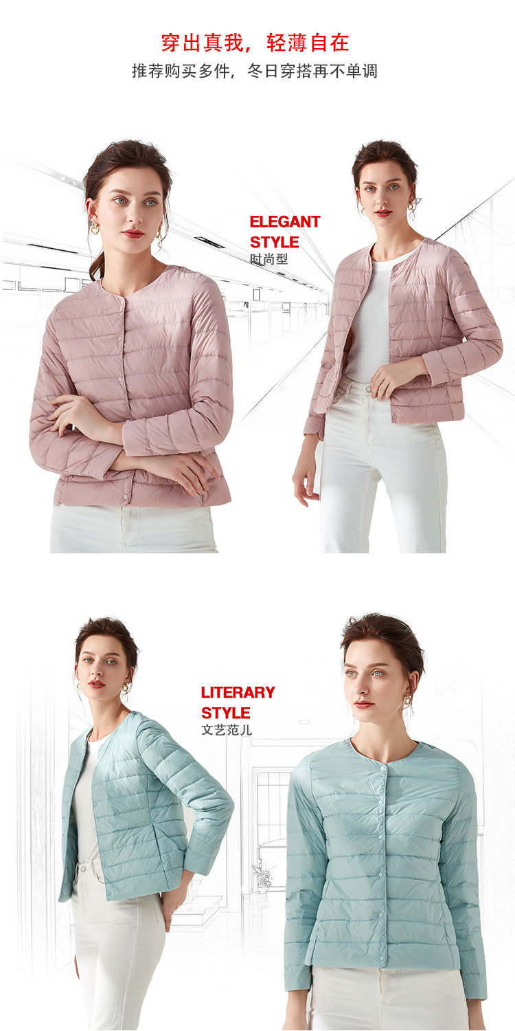 韩版修身轻薄羽绒服女短款2019秋冬新款时尚修身显瘦薄款圆领外套