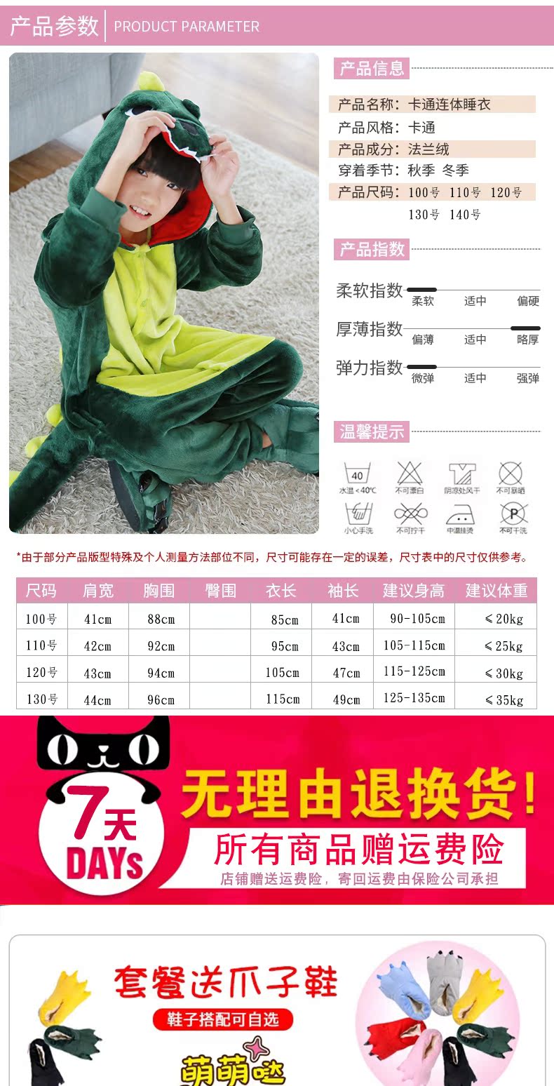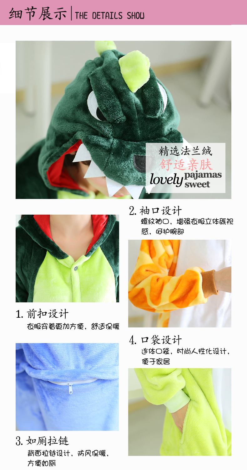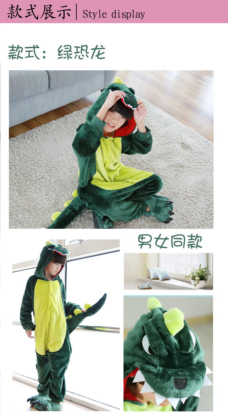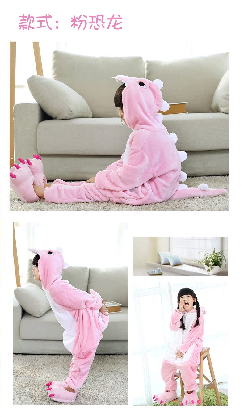 恐龙睡衣儿童法兰绒连体衣卡通动物可爱宝宝珊瑚绒家居服男女孩子