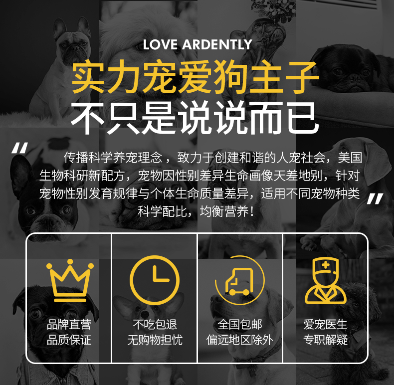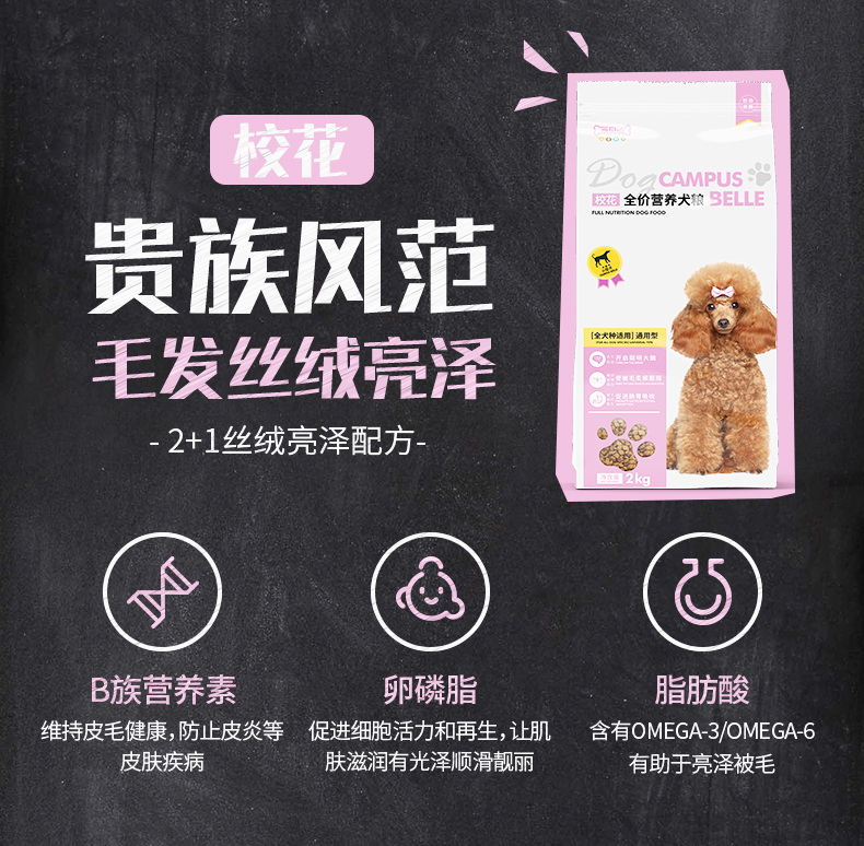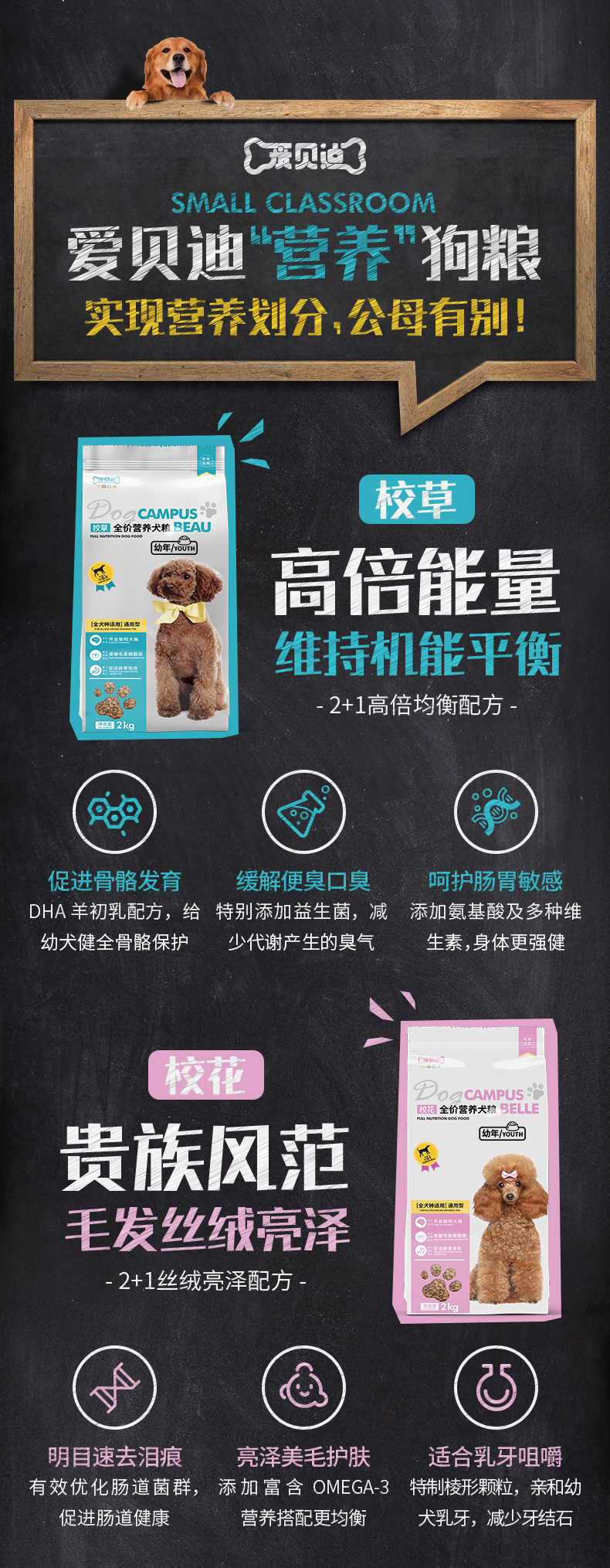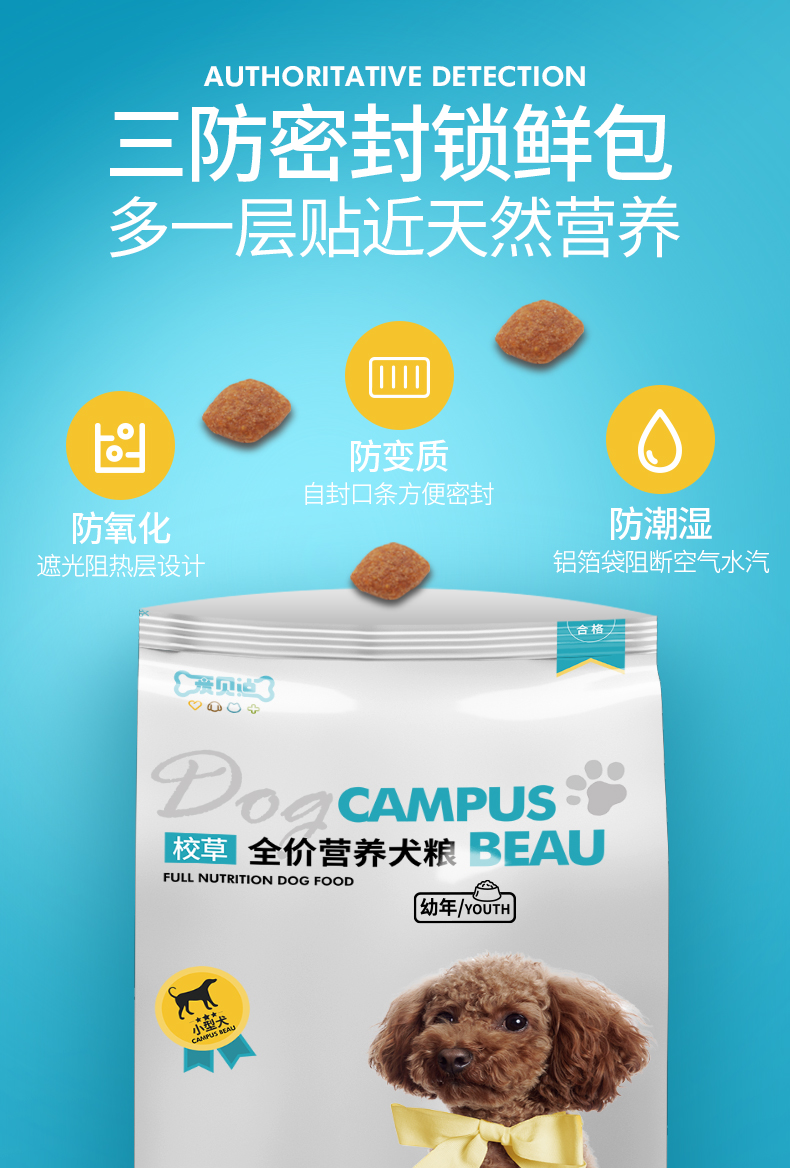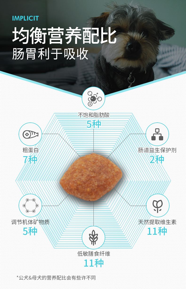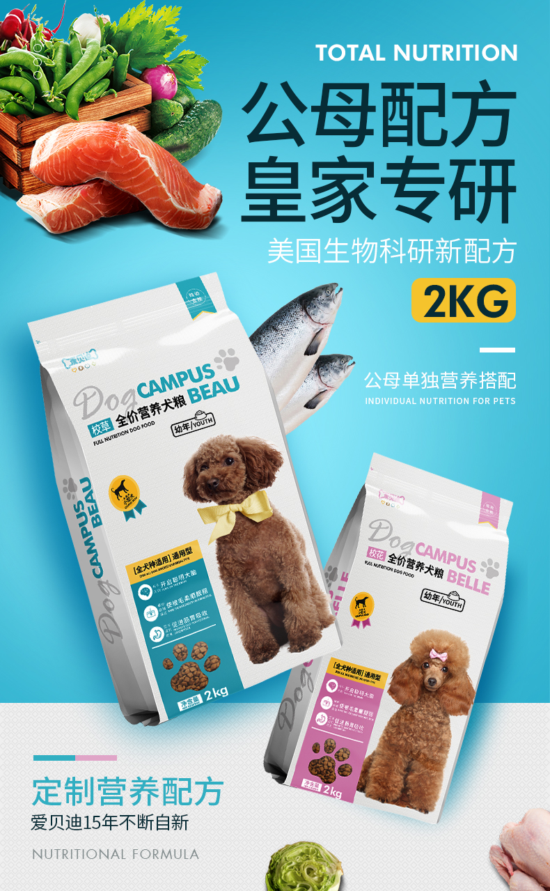 公母配方,满足营养不同,鲜活狗粮,高蛋低脂,酥松可口。美毛健体,易于消化,营养丰富,让狗狗的健康成长