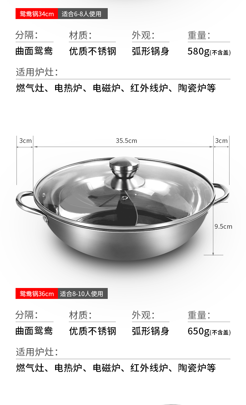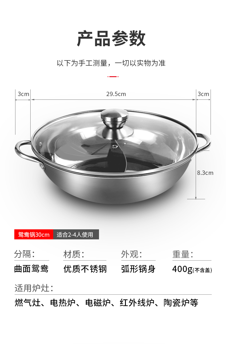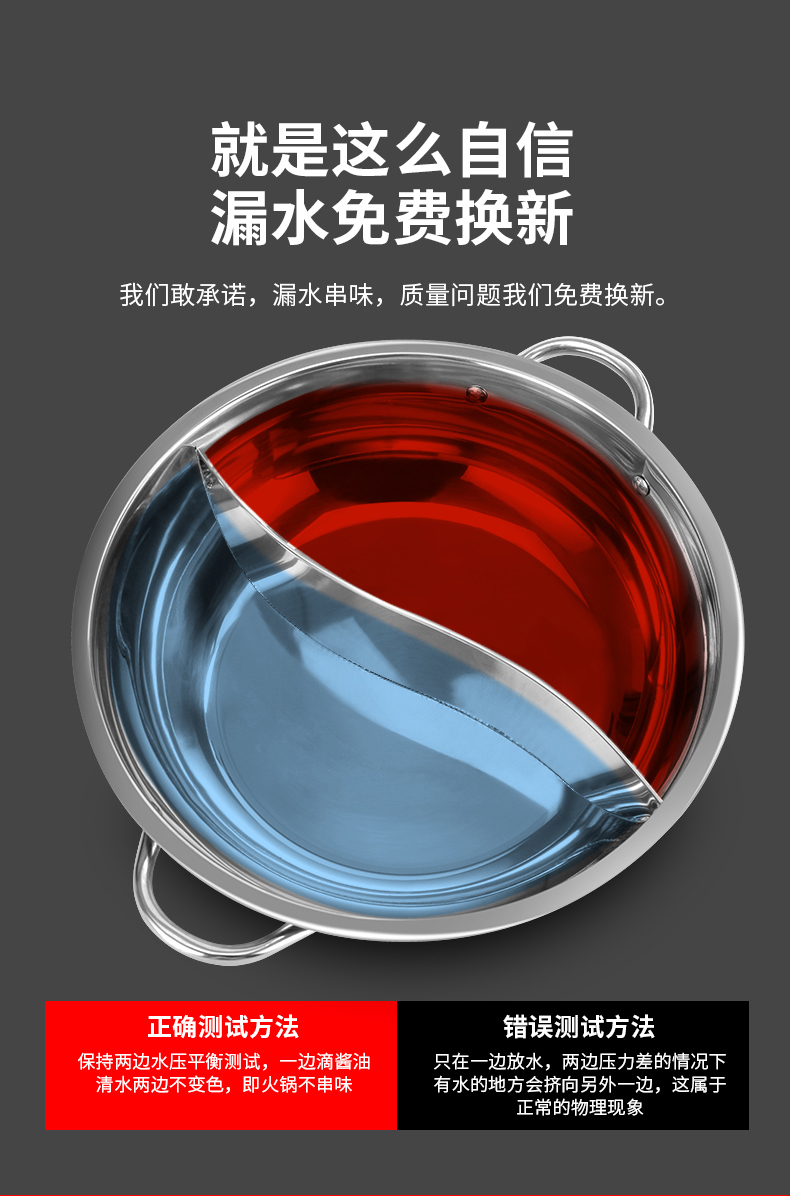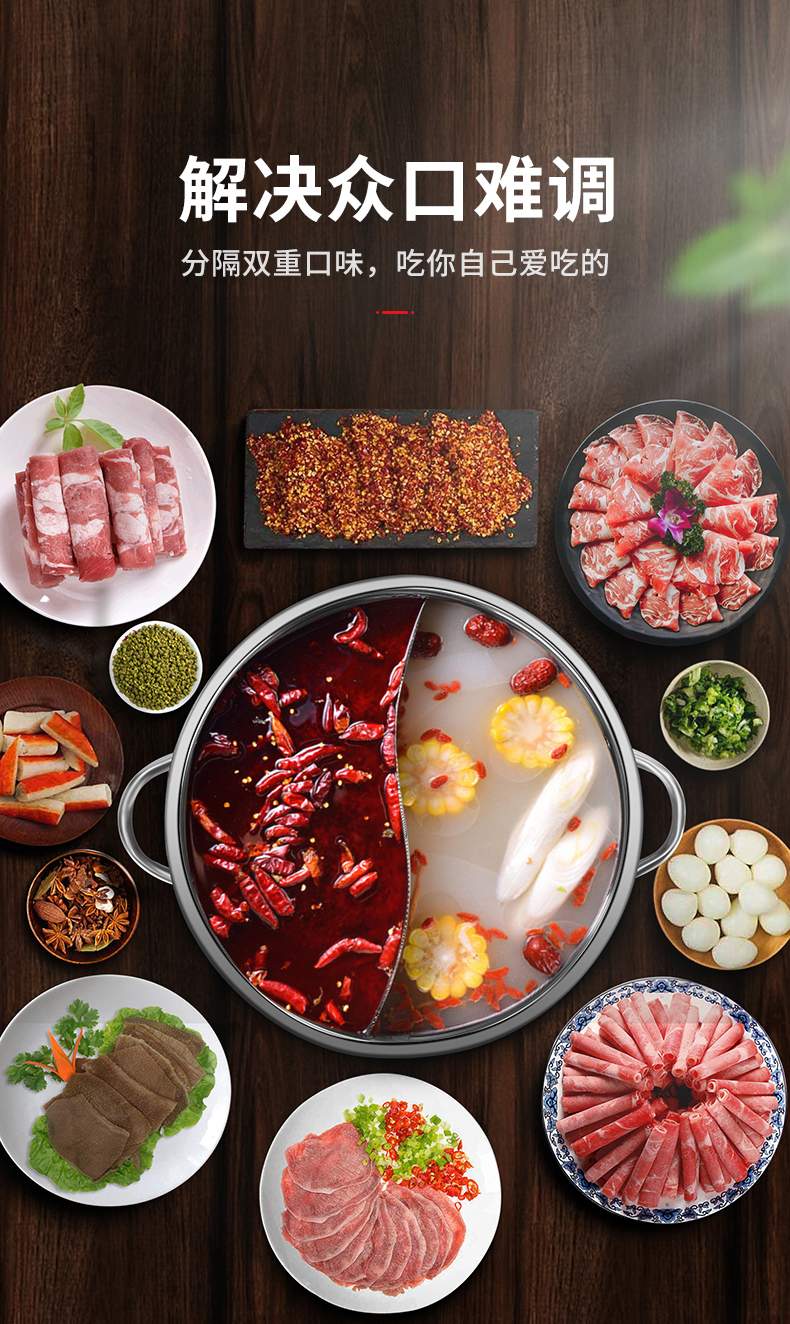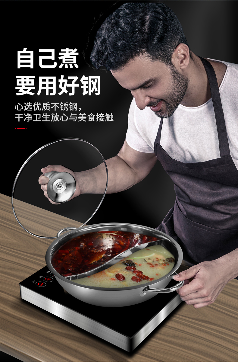 陶朵鸳鸯锅火锅锅具电磁炉专用家用不锈钢火锅盆涮锅羊肉锅大容量