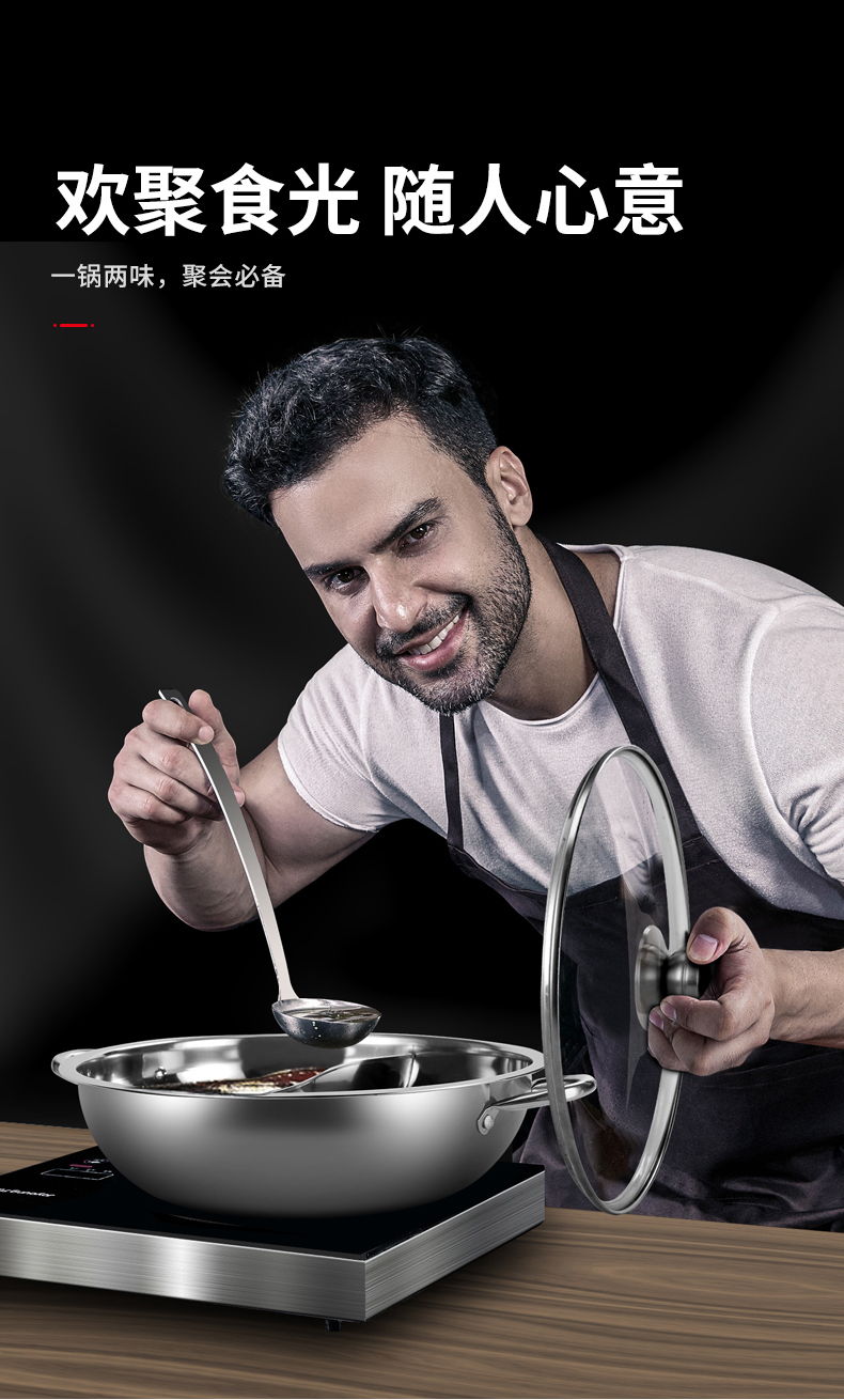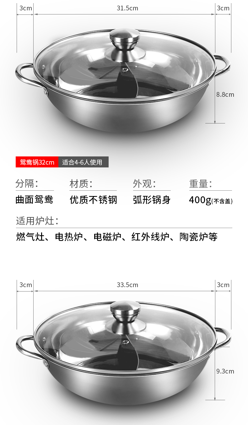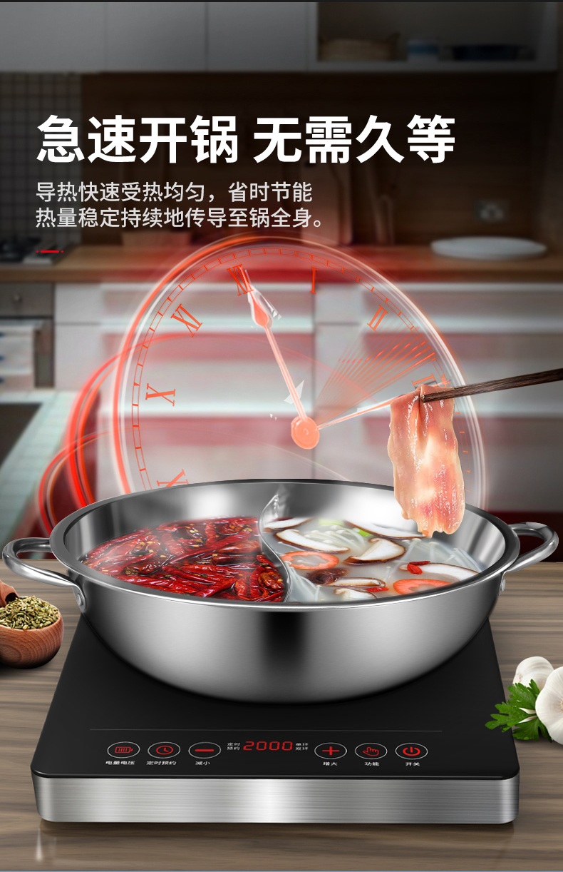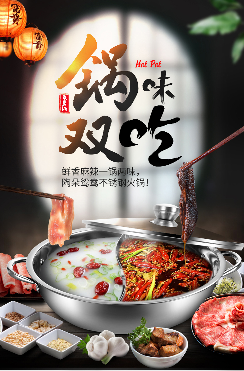 陶朵鸳鸯锅火锅锅具电磁炉专用家用不锈钢火锅盆涮锅羊肉锅大容量