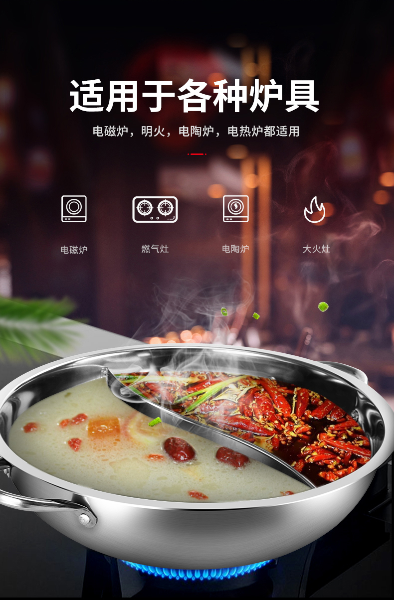 【赠运费险】拍立减3元!秋冬季辣么冷!赶紧备上加厚不锈钢清汤锅!优质不锈钢,干净又卫生!锅底受热均匀,快速吃上美味!明火,电磁炉都能用,在家就能唰火锅!活动9.9!快喊朋友开吃