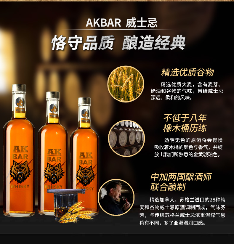 AK47夜店洋酒akbar威士忌whisky高度烈酒40度酒吧鸡尾酒基阿卡47