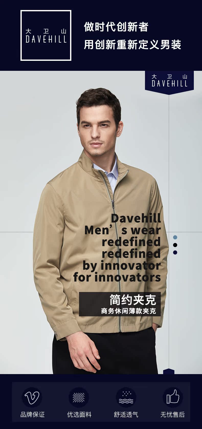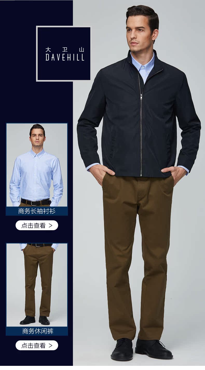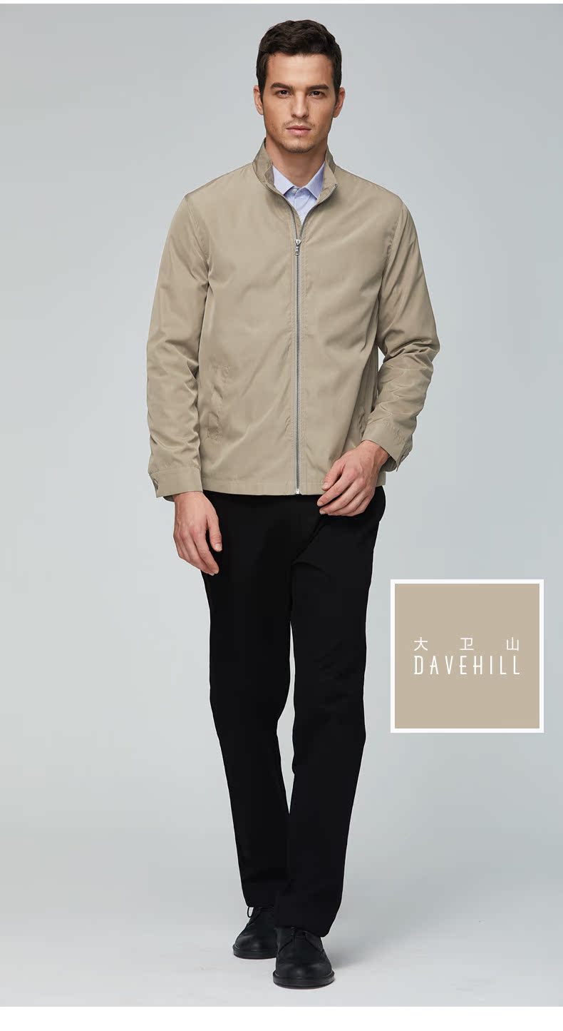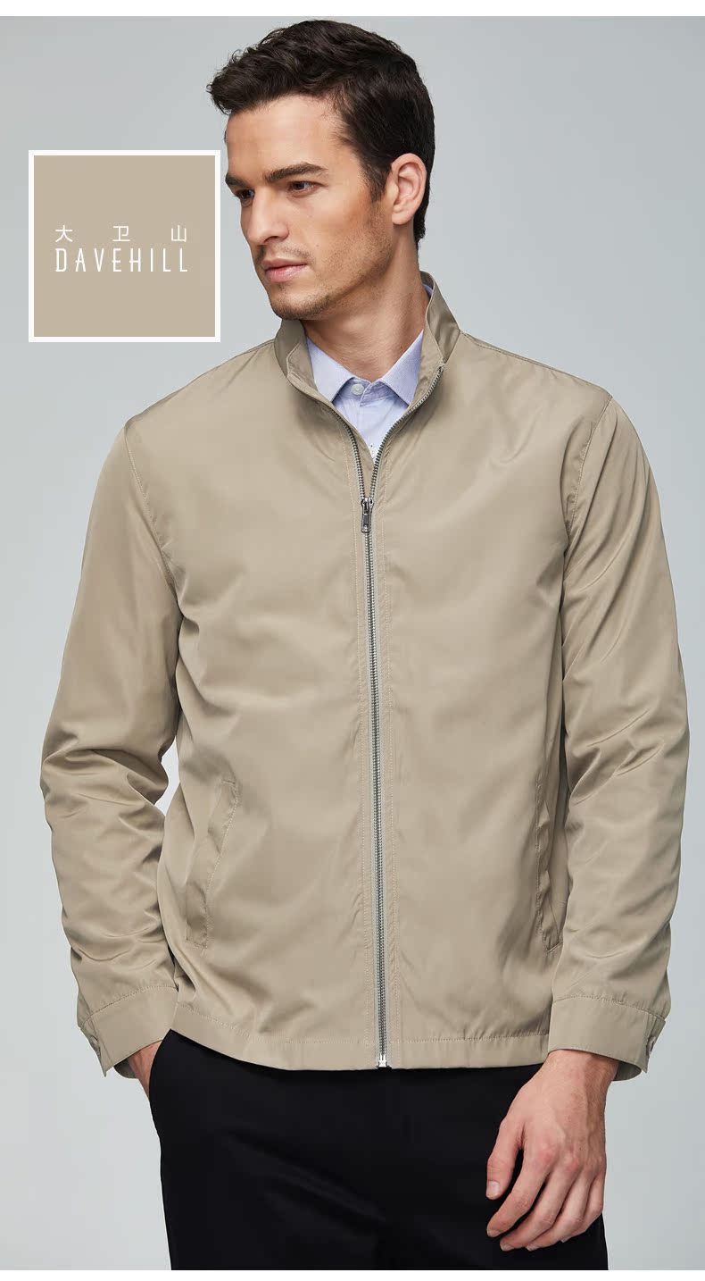 大卫山2019秋装新款短款立领夹克衫纯色休闲上衣秋冬男士商务外套
