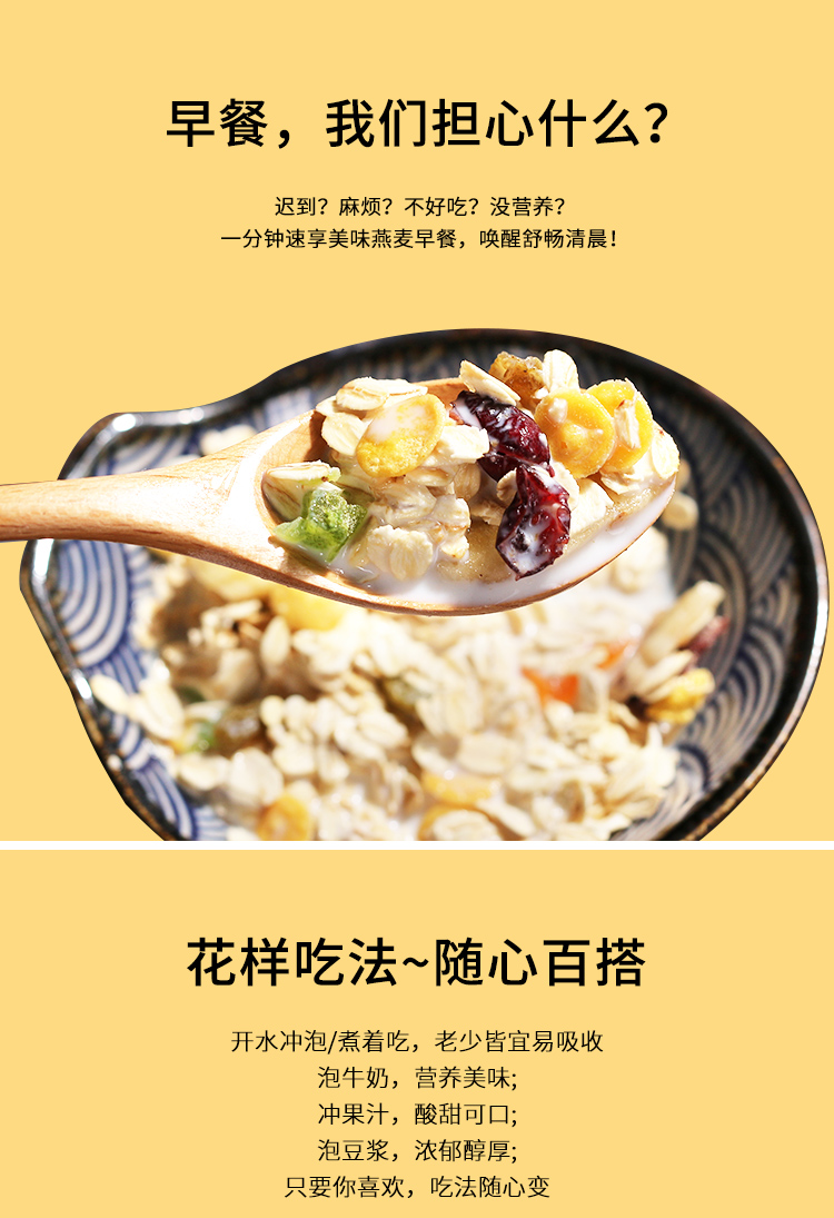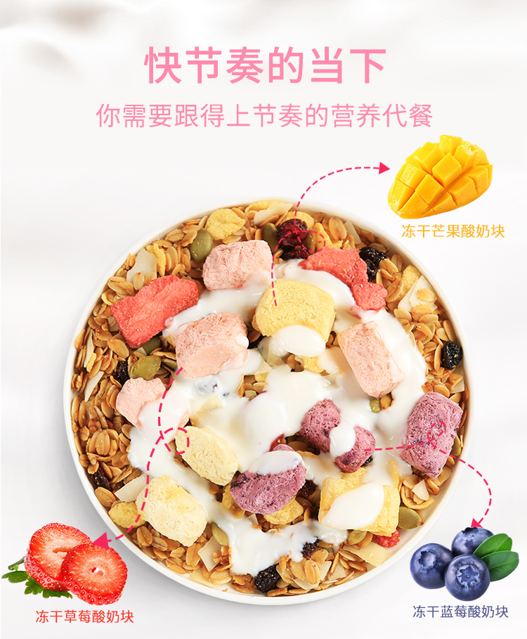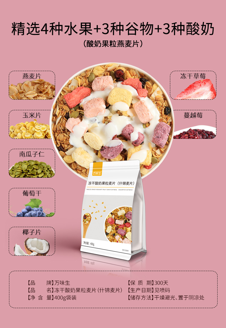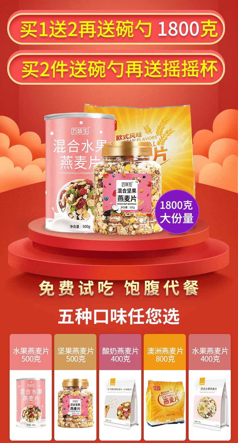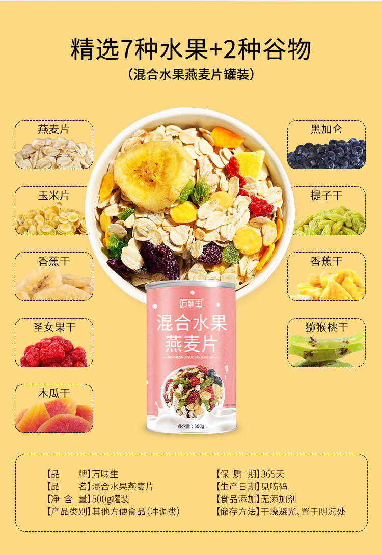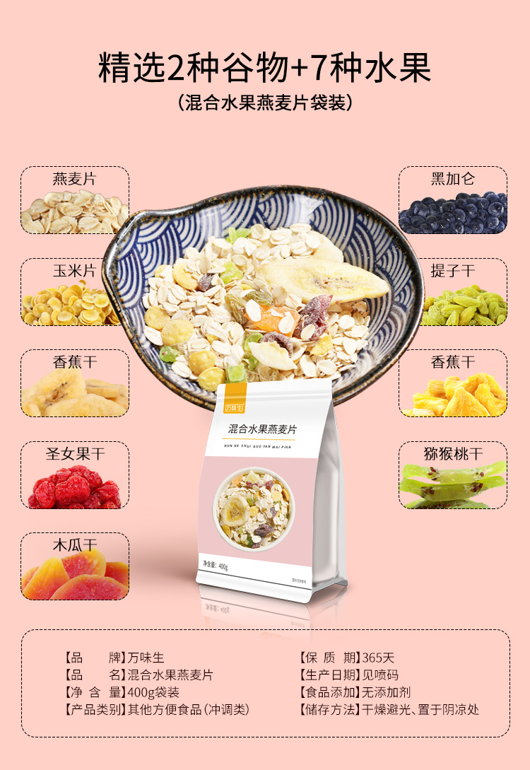 【混合水果燕麦片500g*2】代餐即食无糖燕麦,由多种水果及谷物制作而成,口感香甜爽口,低脂营养美味,冲泡即食,吃法简单快捷,快速补充每日所需膳食纤维,美味低热量。