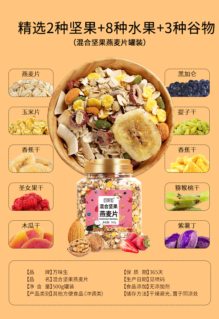 混合水果燕麦片1kg早餐速食冲饮懒人食品坚果谷物粗粮即食麦片
