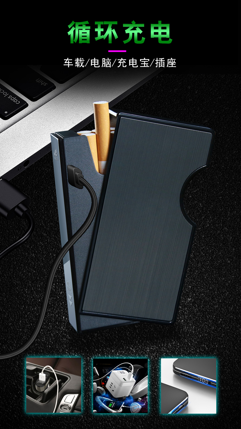 充电烟盒打火机一体20支装金属创意防风便携式细烟盒男女定制礼物