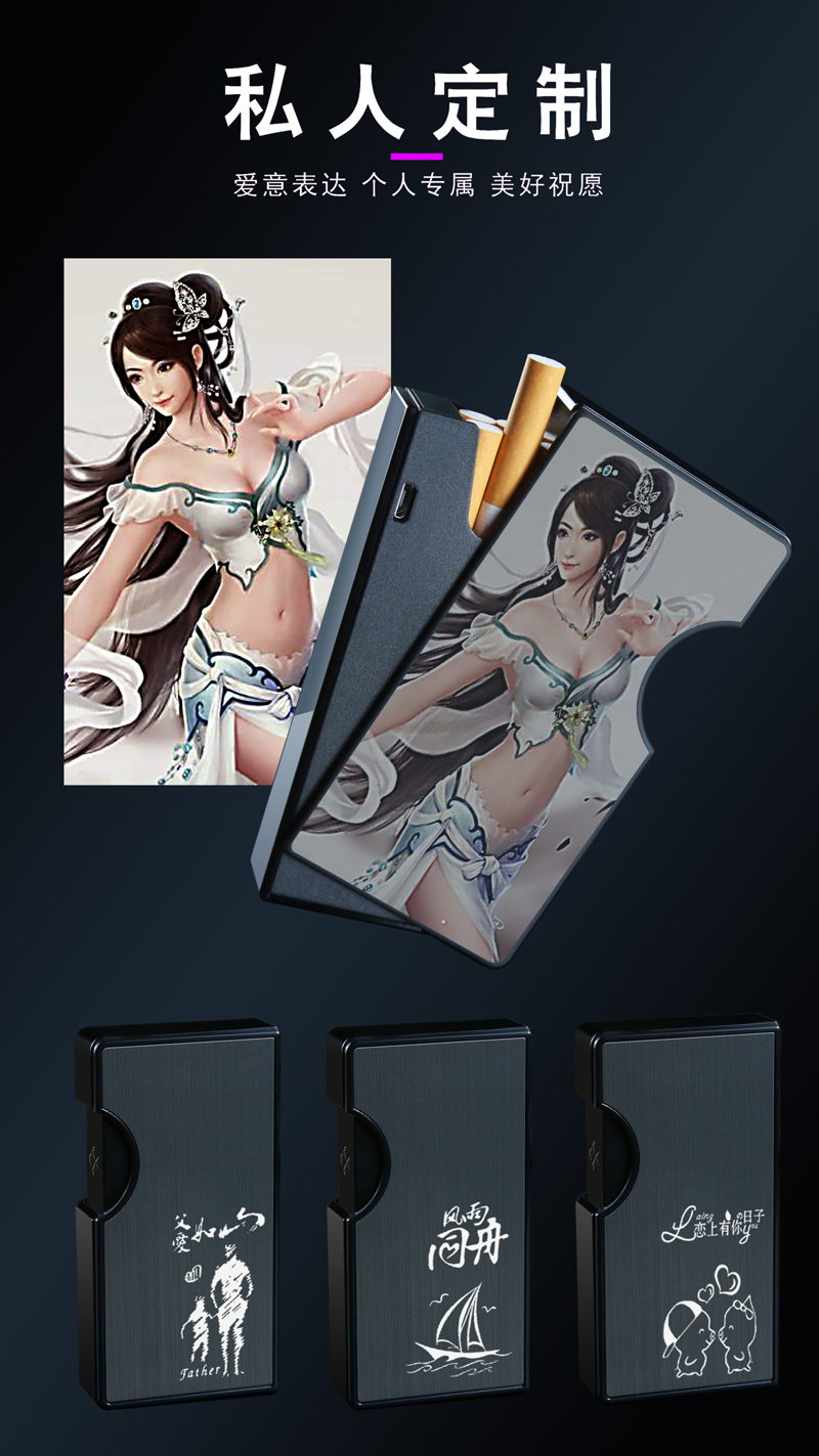 烟火一体,充电烟盒,可以装三种规格的烟哦~防潮!防压!防过充!防过热!方便实用,改变传统点火方式!可定制图案哟!