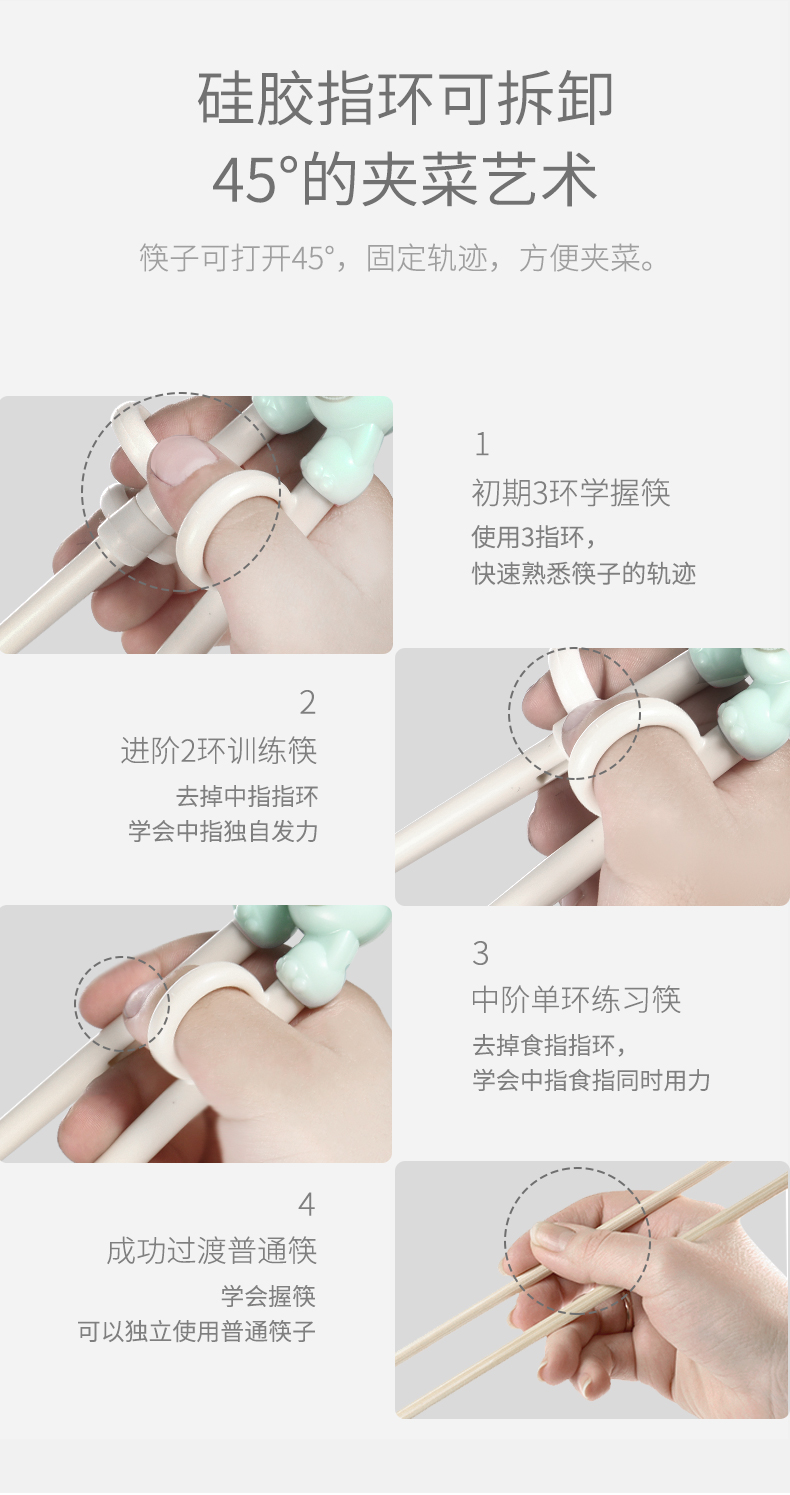 儿童筷子学习筷,上手容易,使用舒适。安全环保材料制作,经过安全监测,妈妈放心。萌趣卡通造型,宝宝爱不释手,科学角度设计,培养宝宝正确拿筷姿势,让宝宝爱上独立吃饭!【赠运费险】