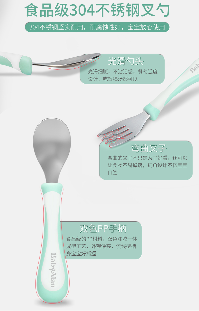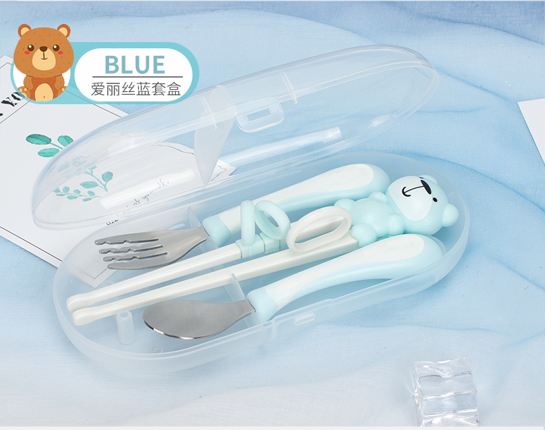 babyalan儿童筷子训练筷练习筷宝宝学习筷婴儿勺子小朋友餐具套装