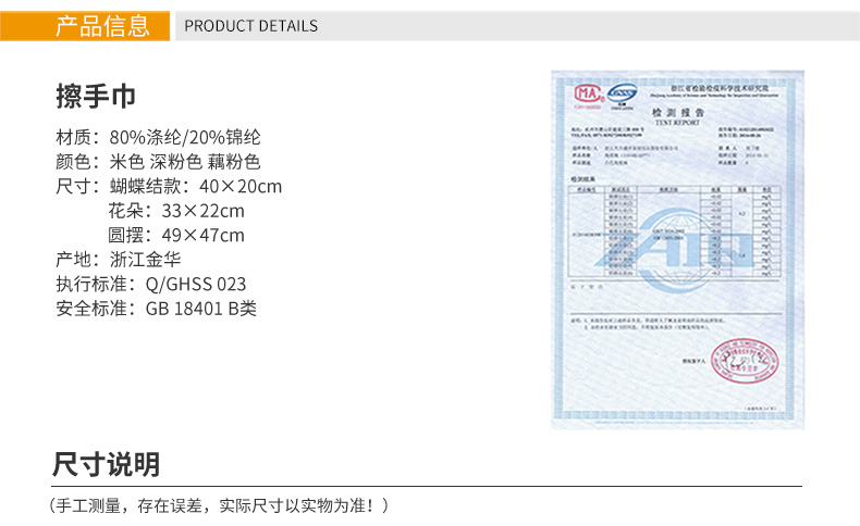 【推荐理由】:韩式卡通设计,轻轻一擦,轻松去污!绒毛密集,快速吸水,柔软亲肤,不易掉毛,不易褪色,纤维材质,柔软舒适,瞬间擦干双手,蝴蝶结擦手巾,可爱蝴蝶结设计,美观大方!