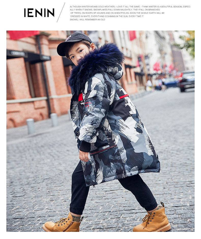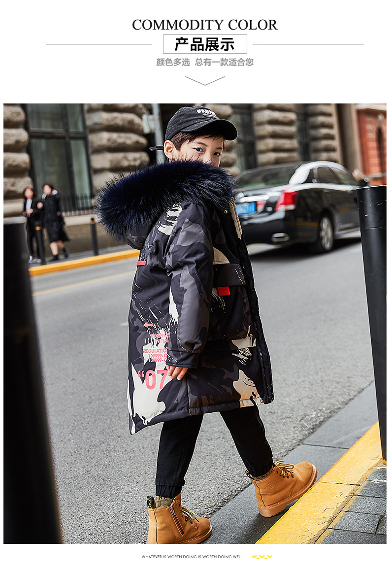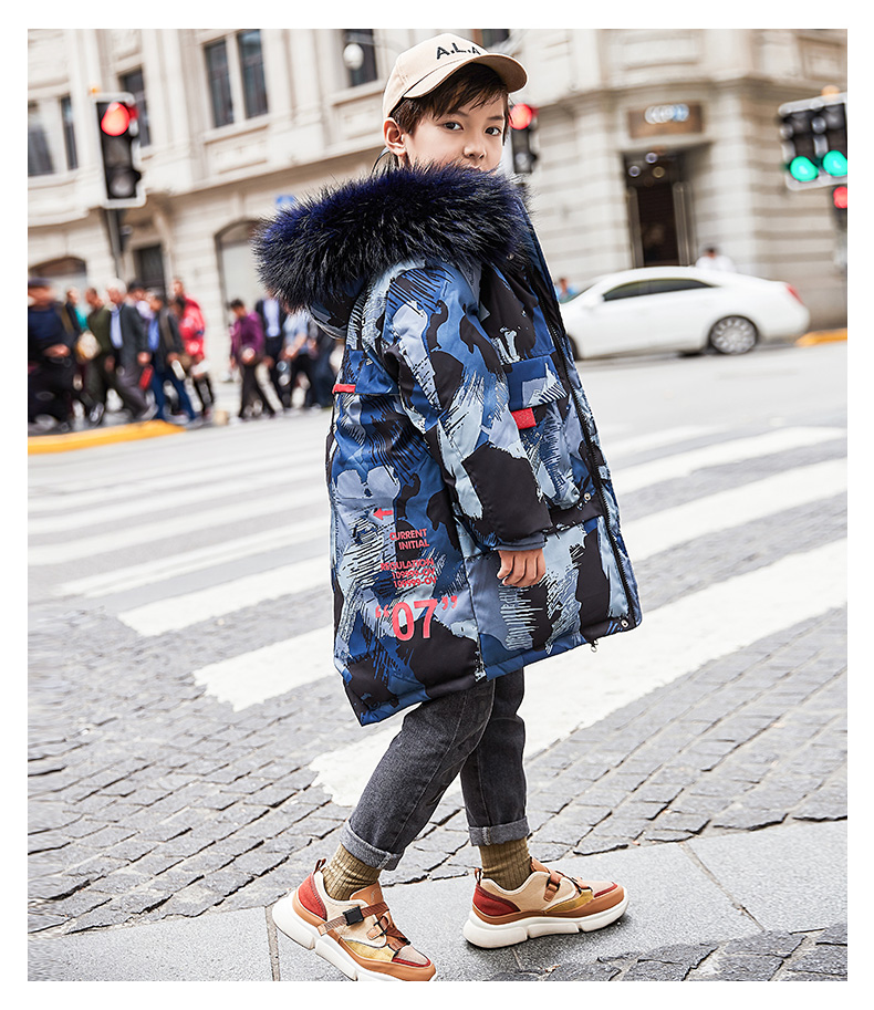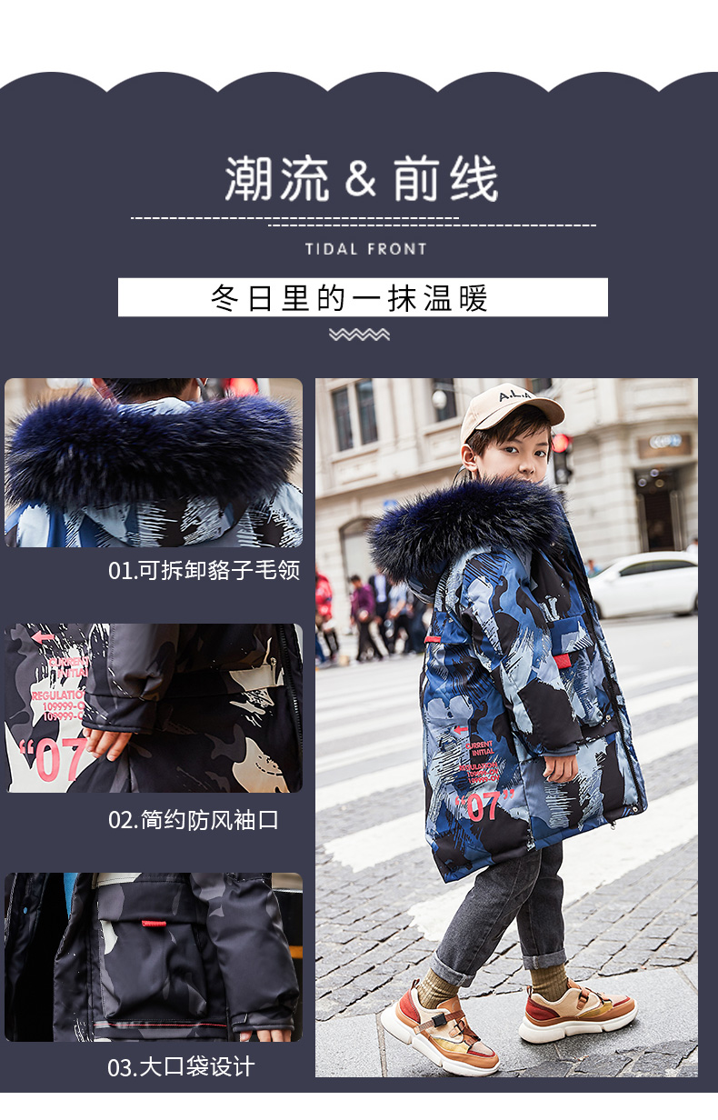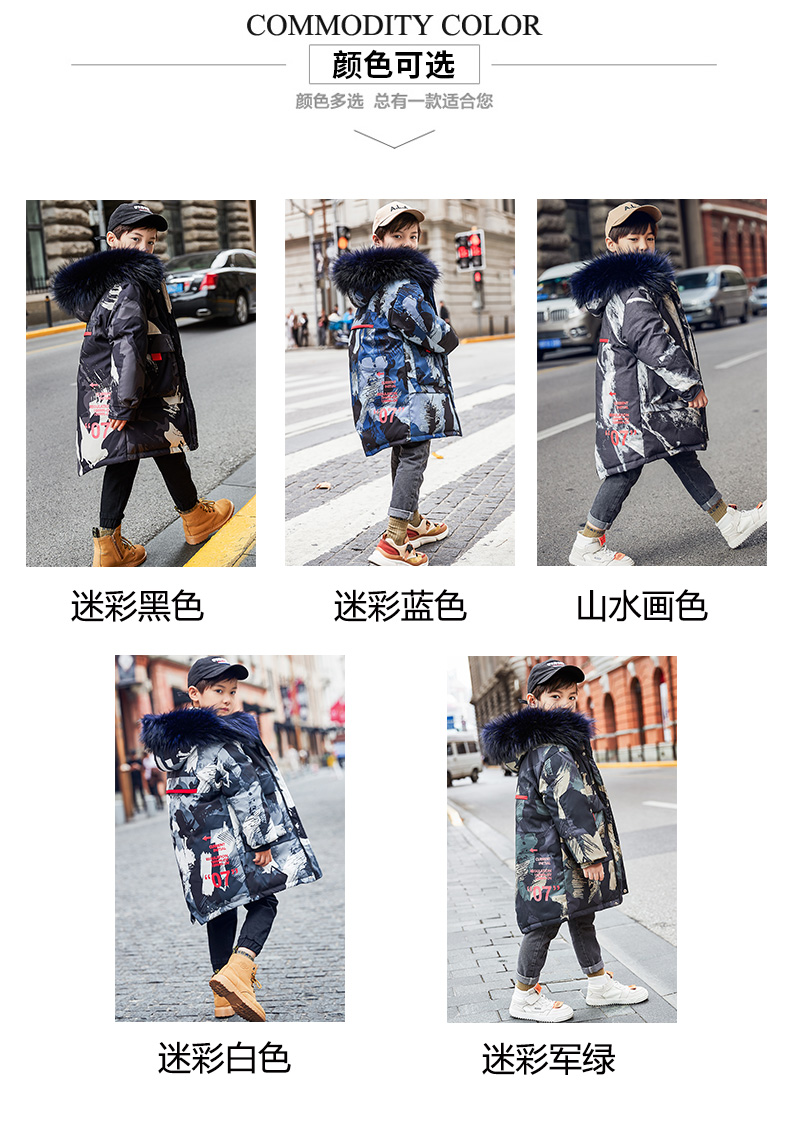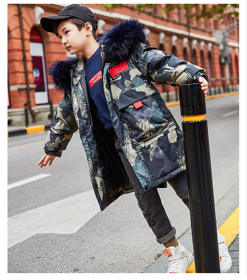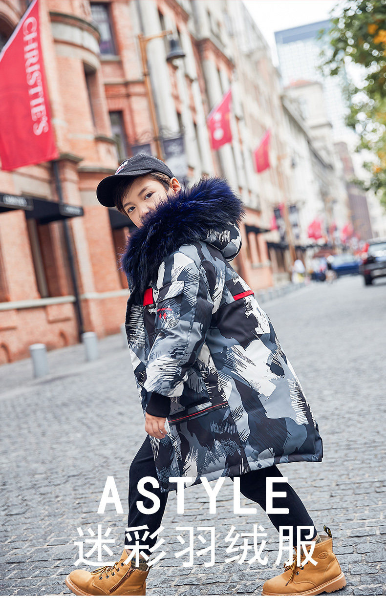 男童羽绒服迷彩儿童装中长款女童大童2019新款洋气正品品牌冬爆款