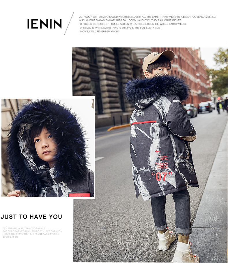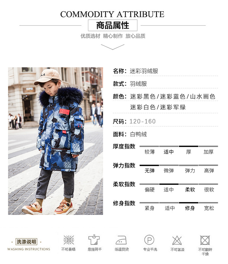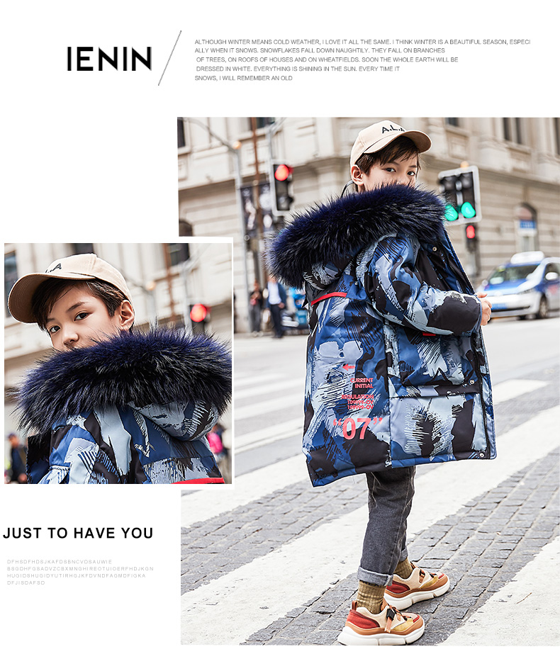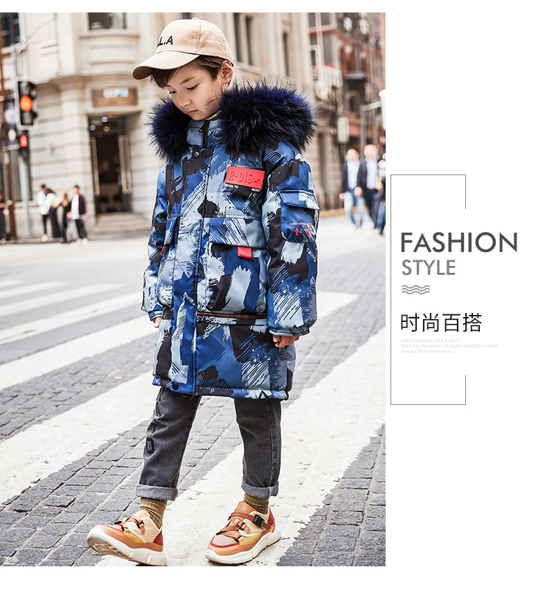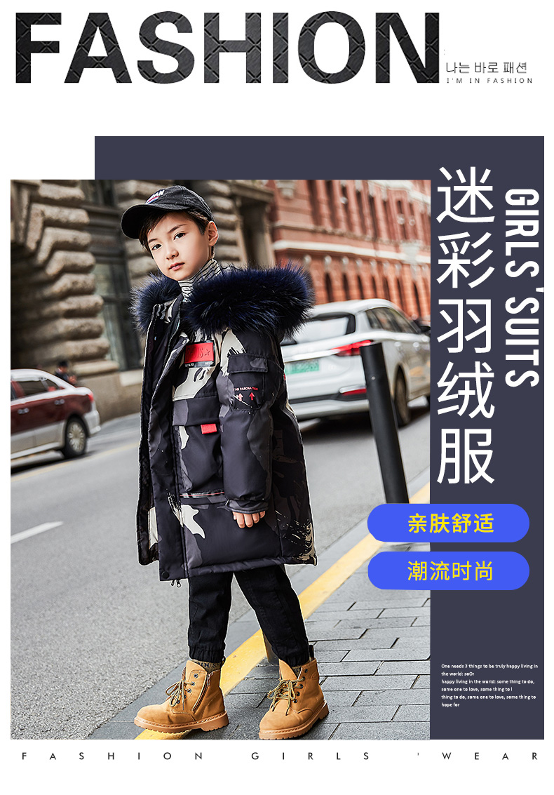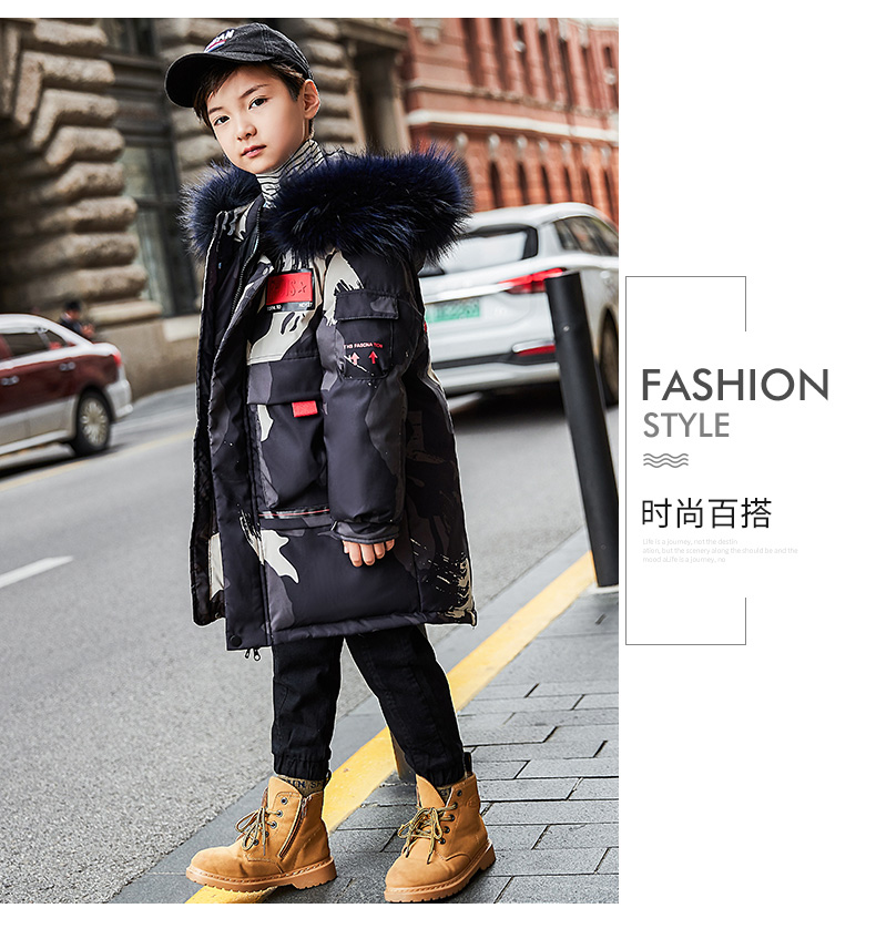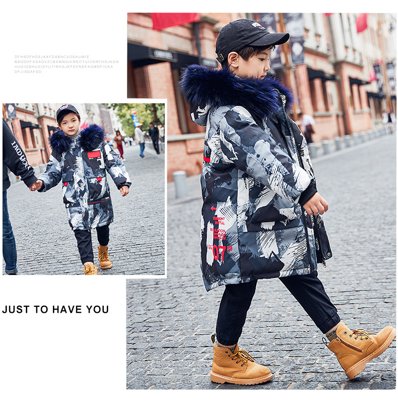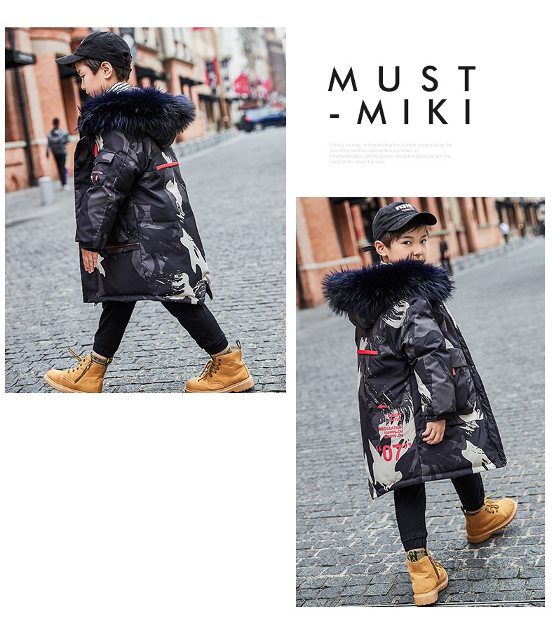 男童羽绒服迷彩儿童装中长款女童大童2019新款洋气正品品牌冬爆款