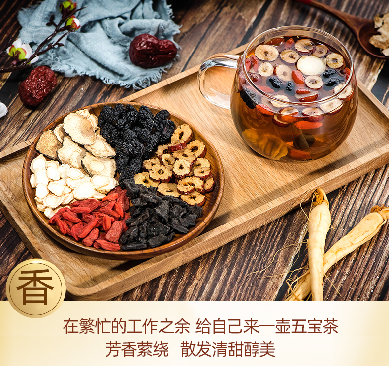 人参黄精枸杞红枣桑葚养生五宝茶肾士茶保健男熬夜人调理滋补气血