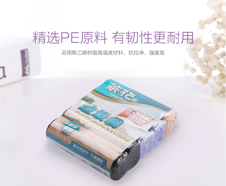 茶花垃圾袋家用客厅卫生间加厚点断式垃圾袋批发分类大号塑料袋