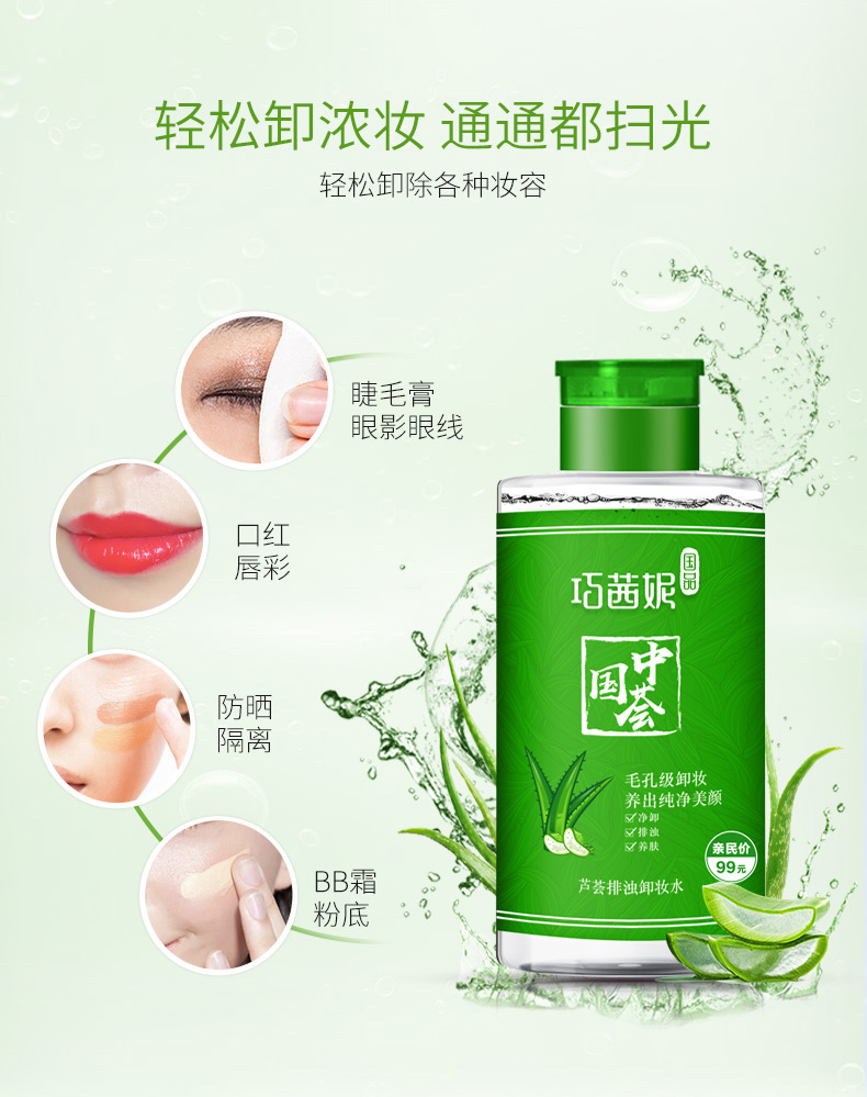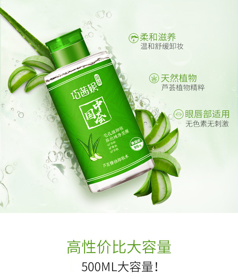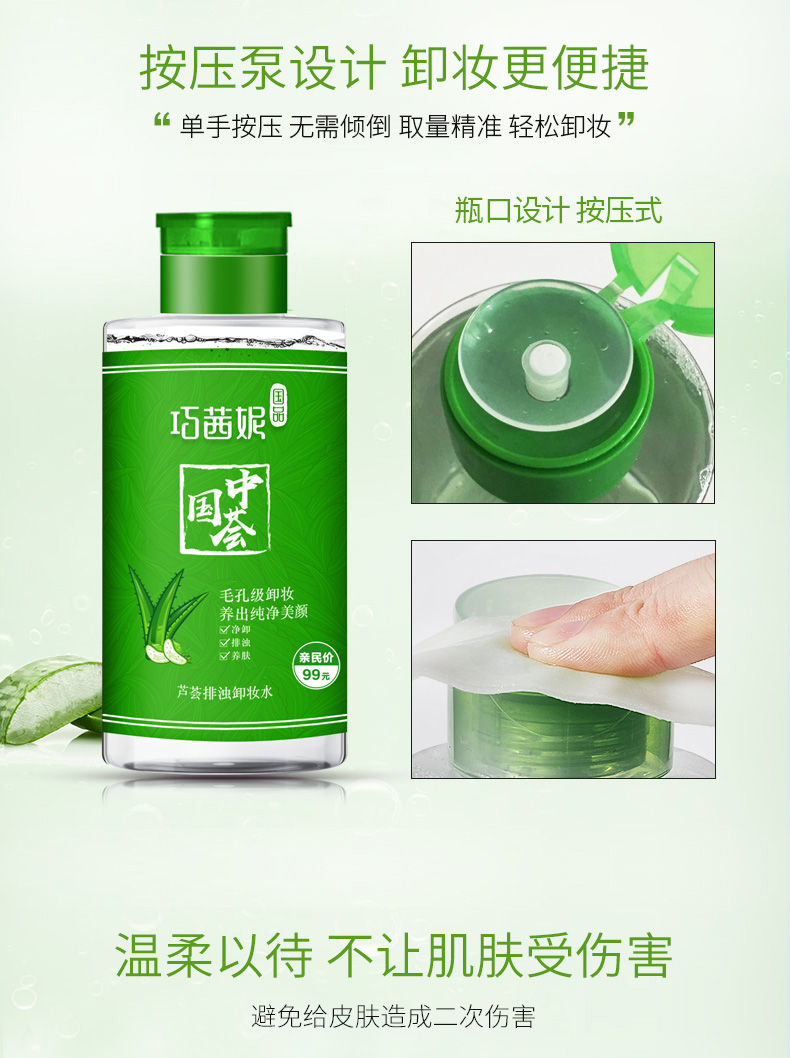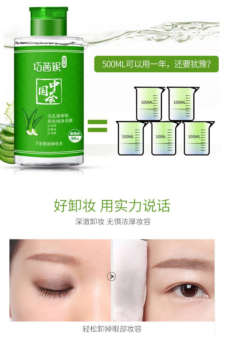 【第二件半价】【免洗更方便】巧茜妮卸妆水,控油清爽,芦荟卸妆乳,天然芦荟香,无色素,适合任何肌肤,轻松卸妆,免水轻松卸妆【赠运费险】