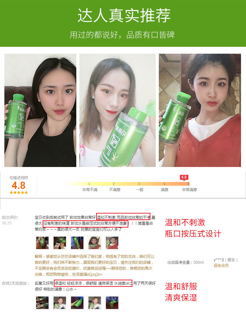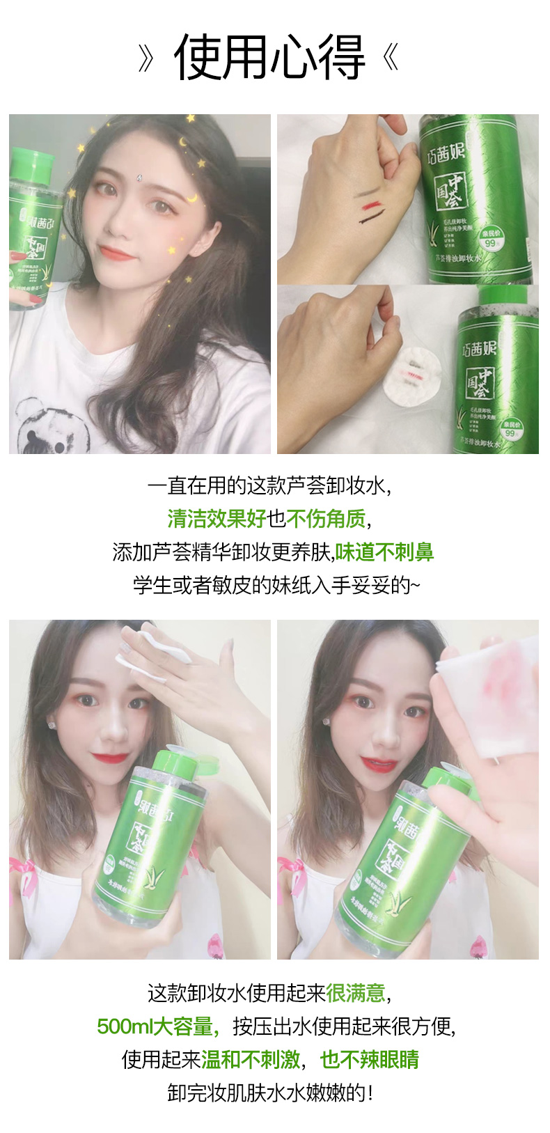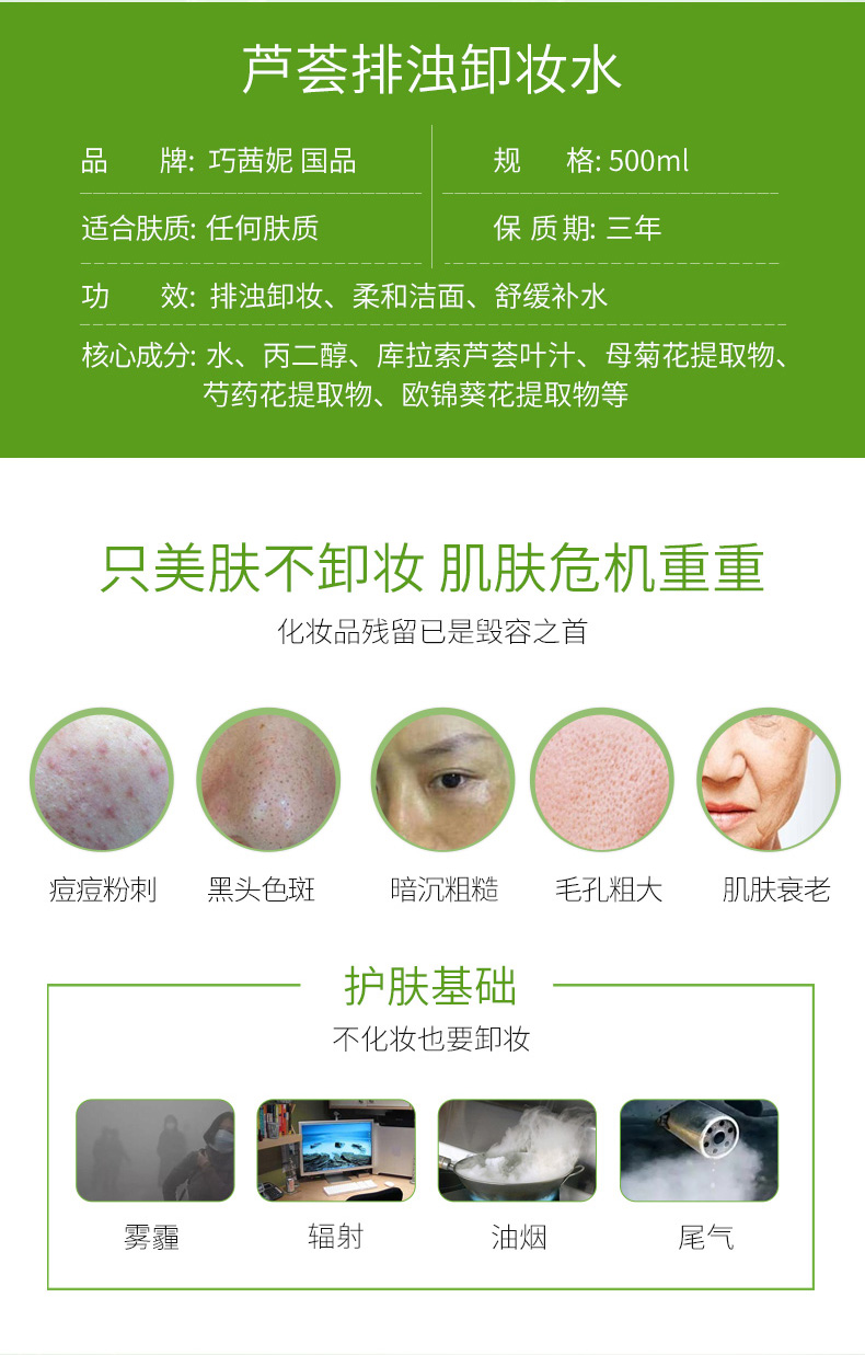 【第二件半价】【免洗更方便】巧茜妮卸妆水,控油清爽,芦荟卸妆乳,天然芦荟香,无色素,适合任何肌肤,轻松卸妆,免水轻松卸妆【赠运费险】