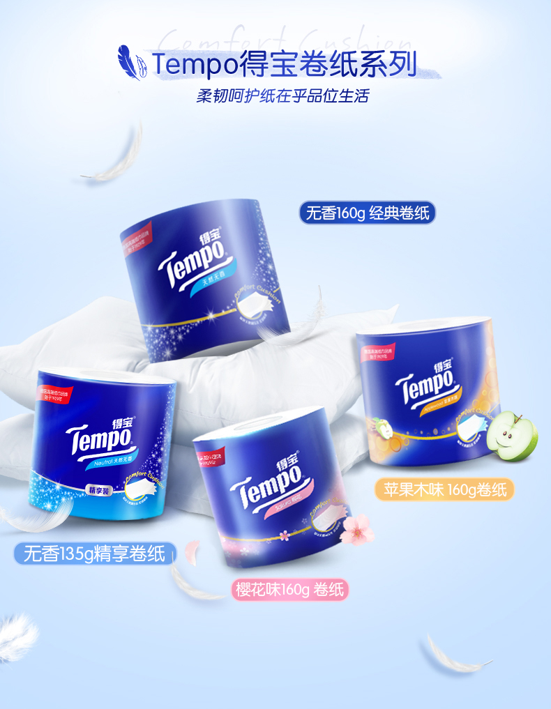 Tempo得宝卷纸官方15卷厕纸家用德宝卷筒纸巾实惠装组合装正品