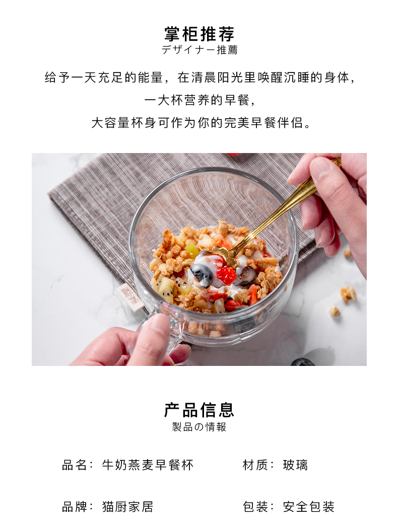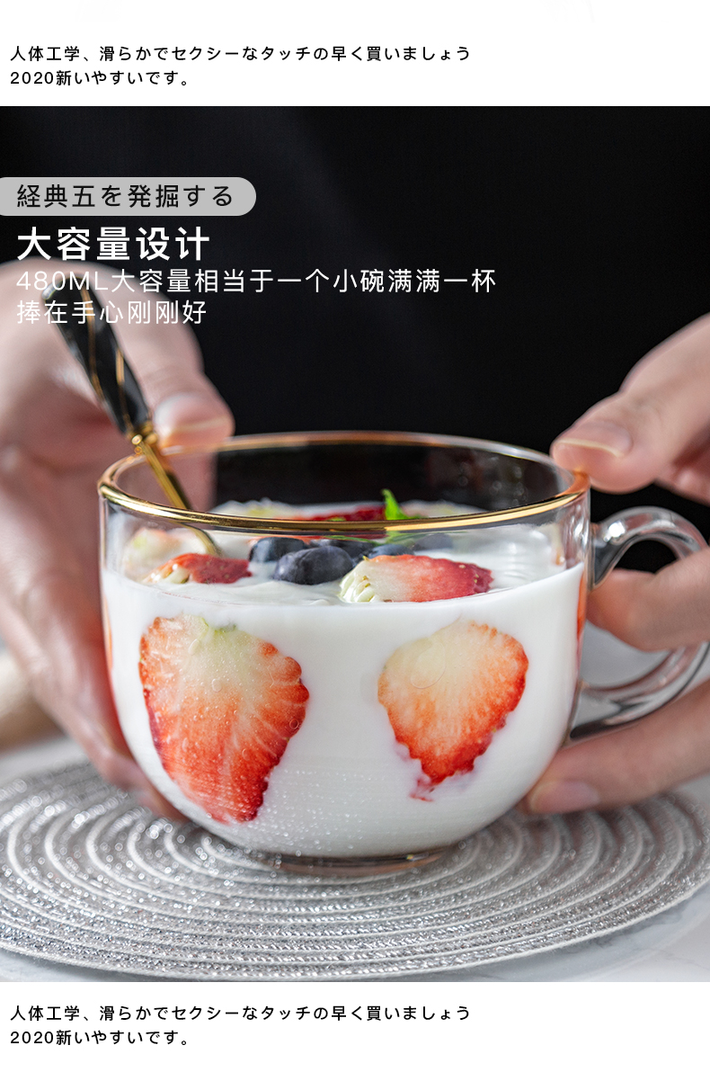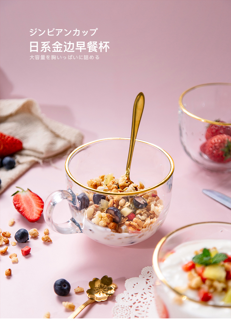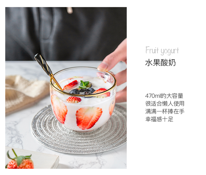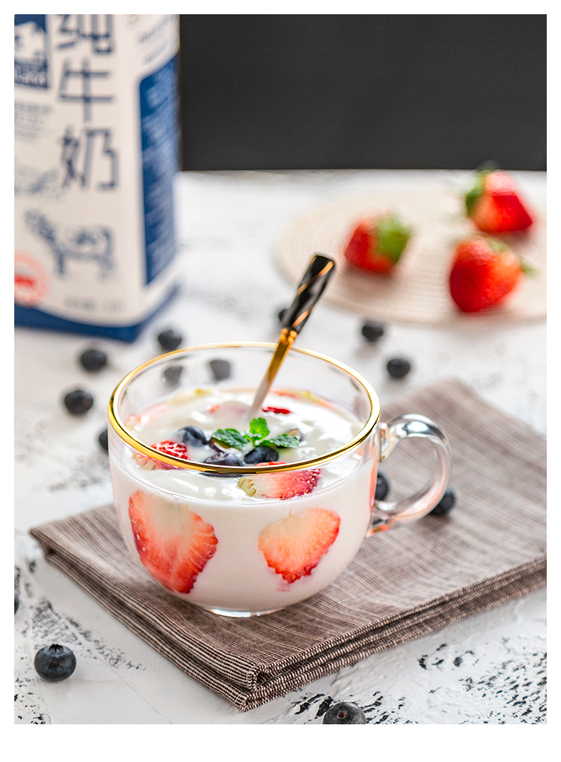 猫厨【2只装】ins470ML金边早餐玻璃杯日式牛奶杯酸奶燕麦杯水杯