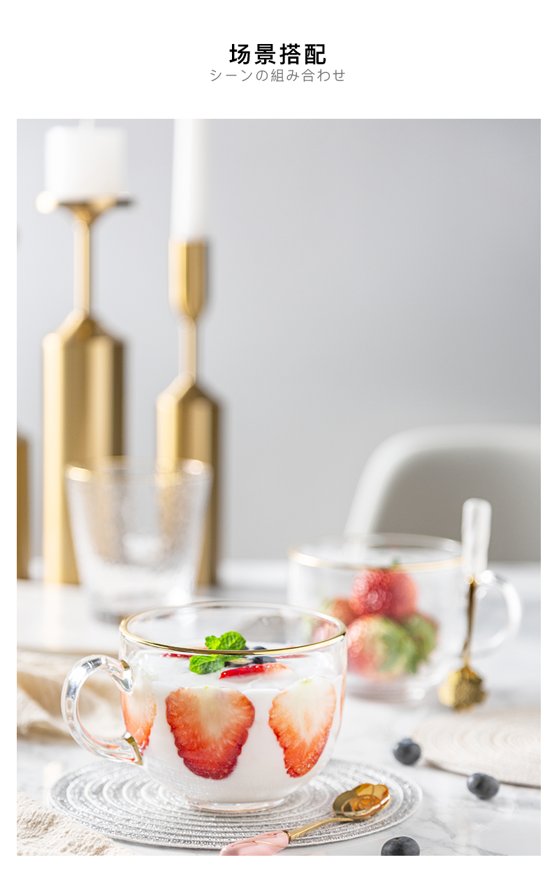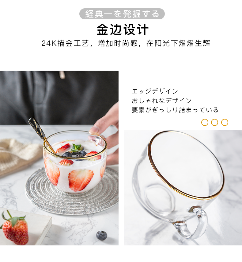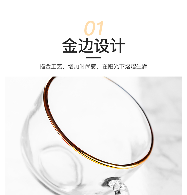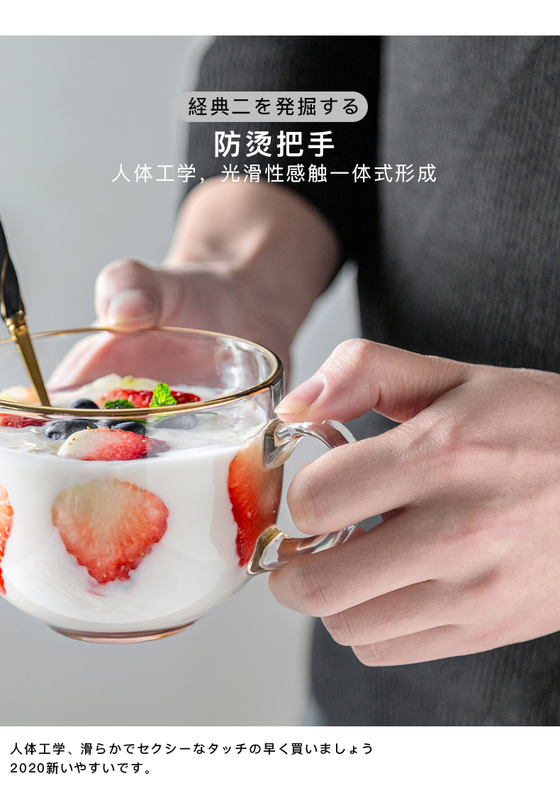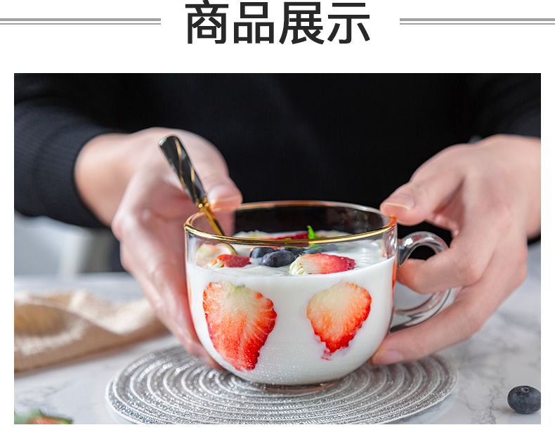猫厨【2只装】ins470ML金边早餐玻璃杯日式牛奶杯酸奶燕麦杯水杯