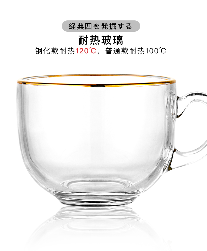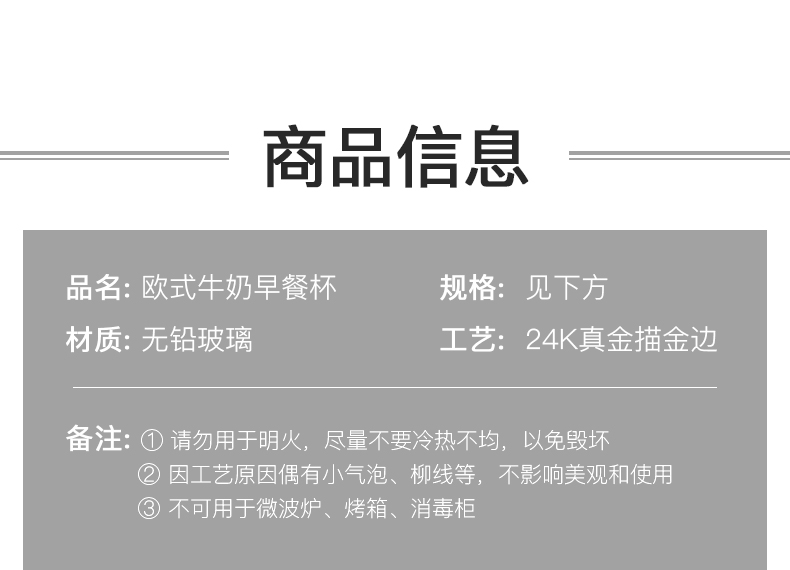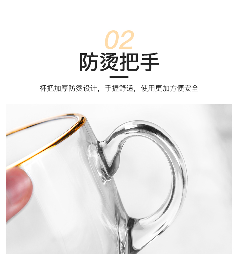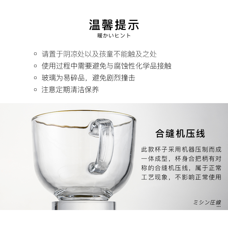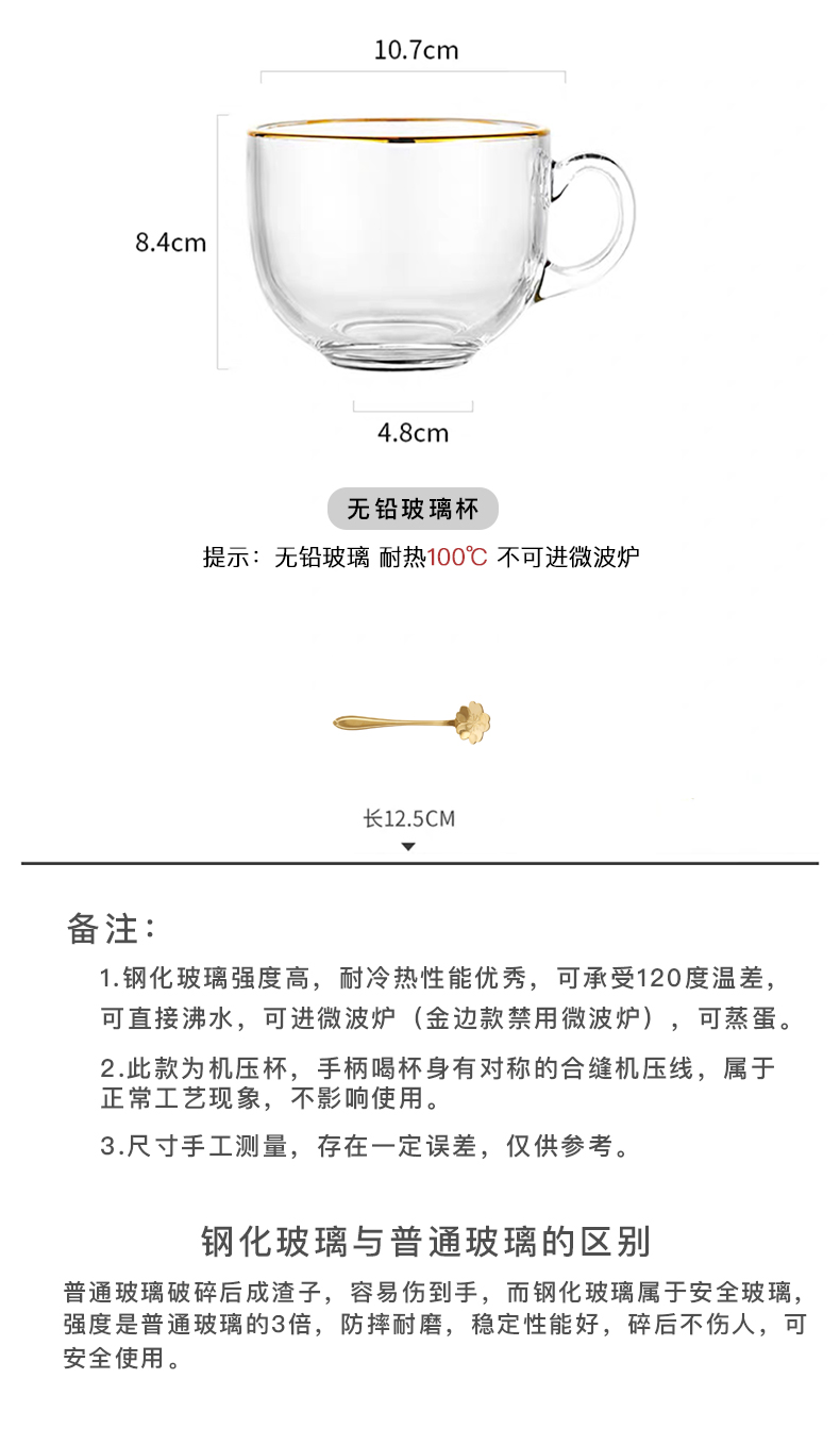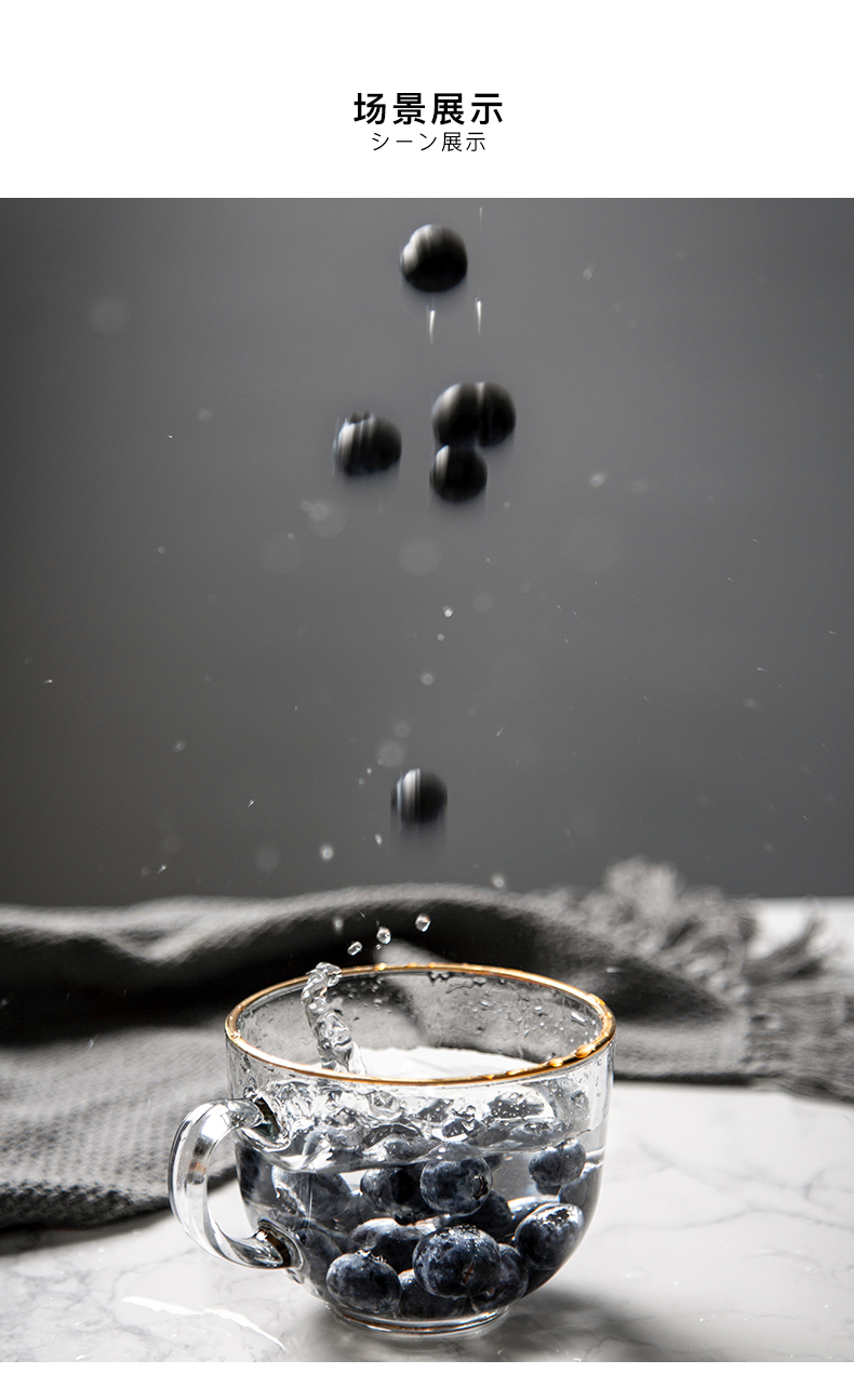 猫厨【2只装】ins470ML金边早餐玻璃杯日式牛奶杯酸奶燕麦杯水杯
