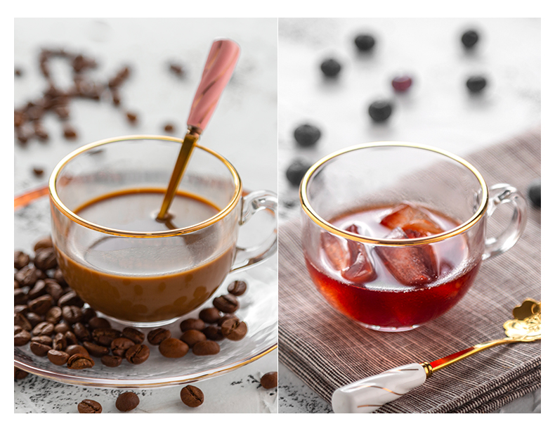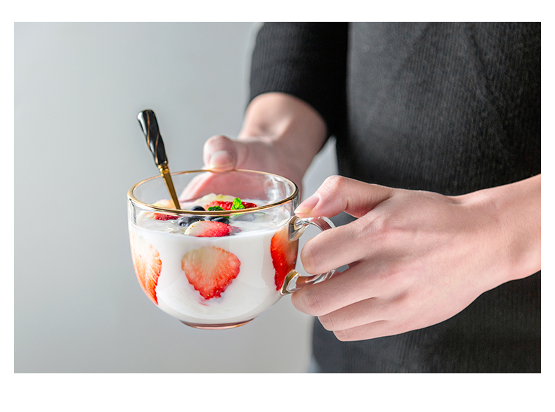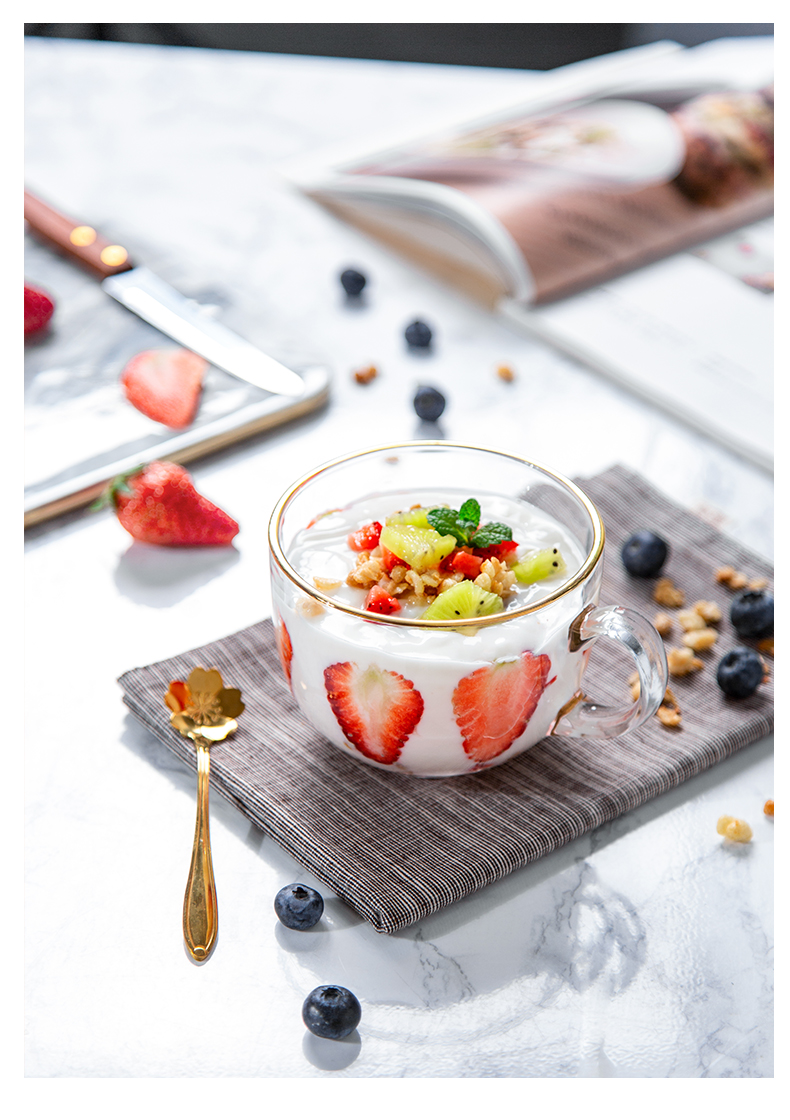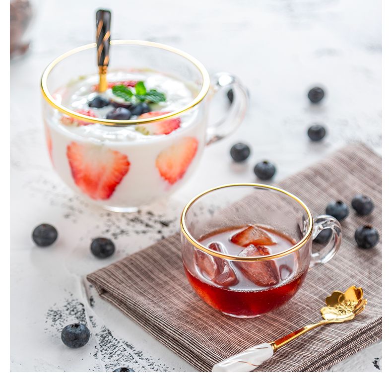 【送樱花半勺】猫厨欧式24K金边无铅玻璃杯,大容量,做一杯草莓水果酸奶,瞬间征服你的女神,超高颜值,让你感受什么叫一见钟情。