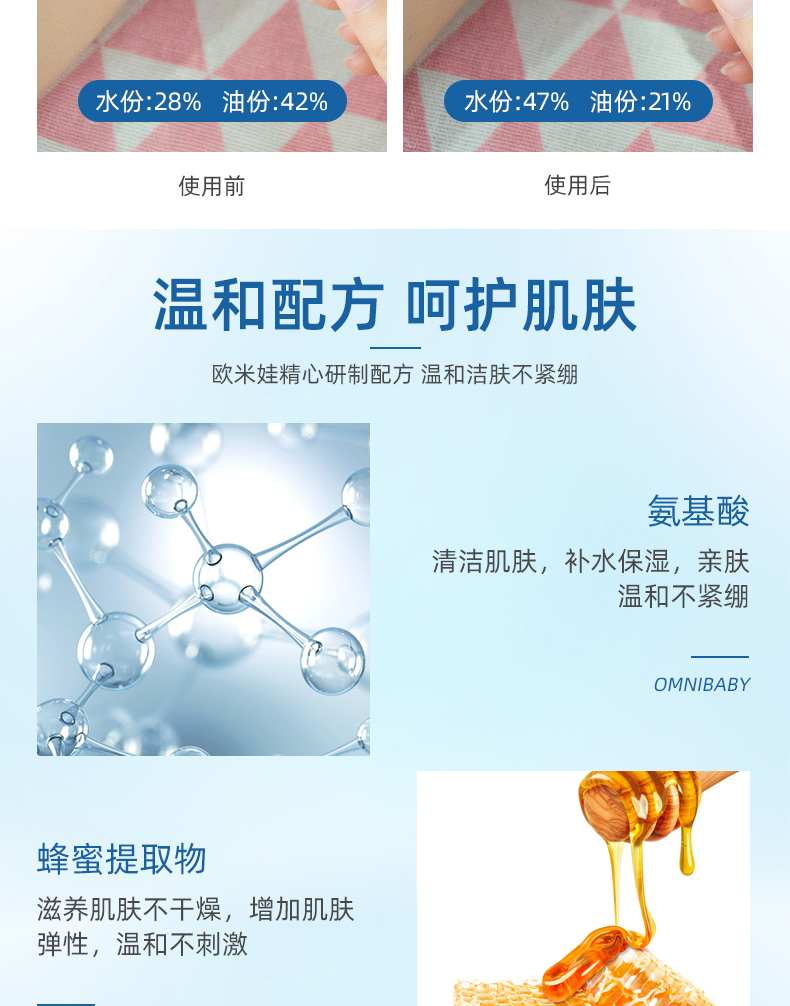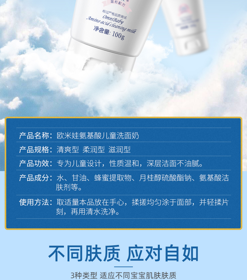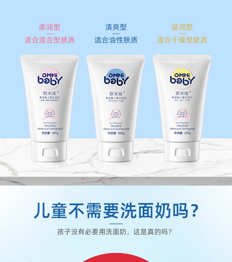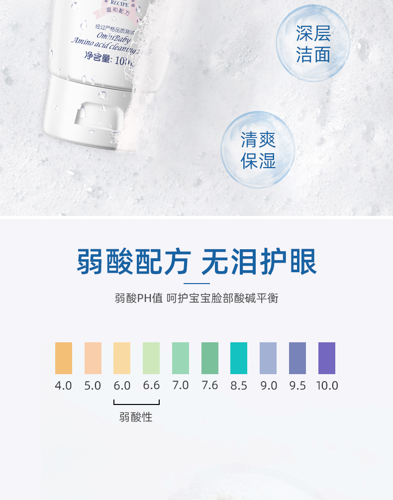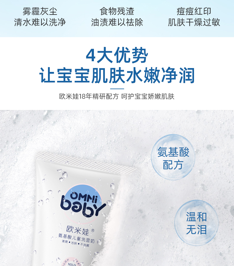 欧米娃婴儿专用洁面乳,温和无泪不刺激,保湿滋润,保护宝宝娇嫩脆弱的肌肤,氨基酸配方