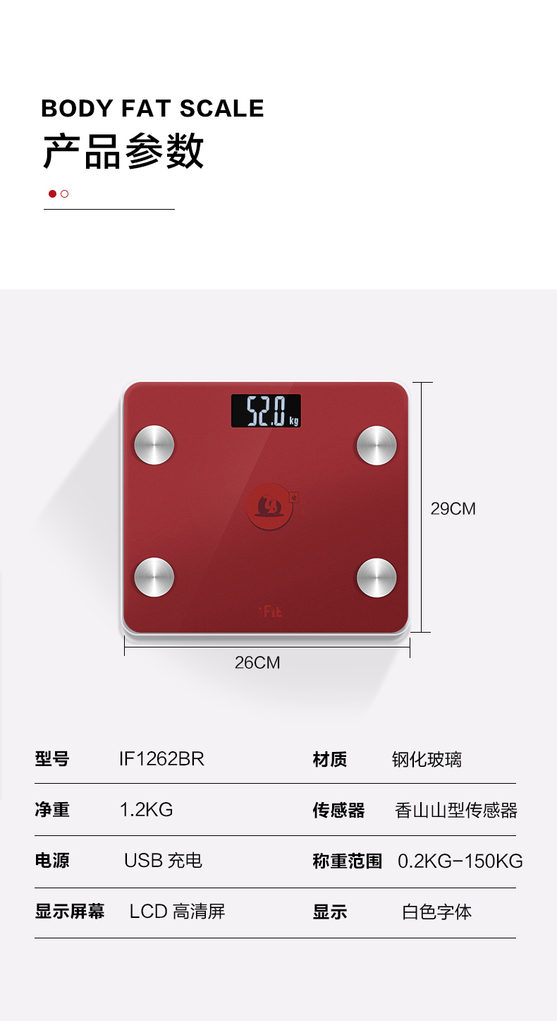 ifit智能体脂秤体重秤电子秤成人精准情侣充电脂肪家用健康体脂称