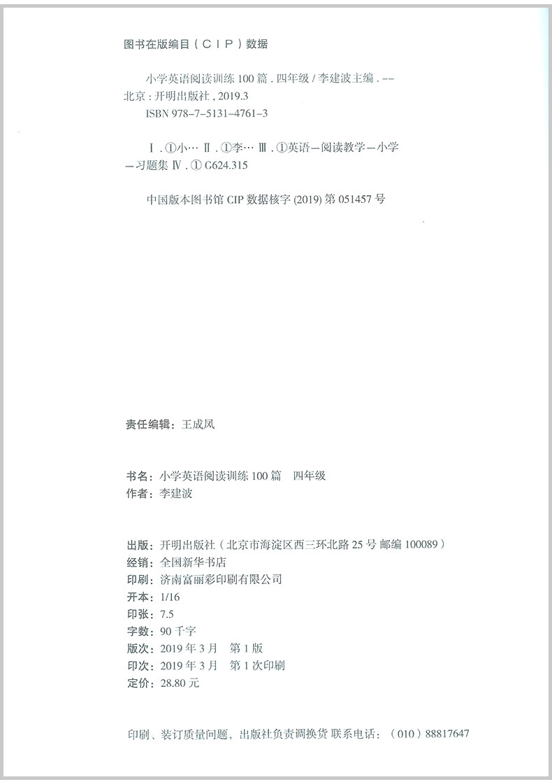 2019版 响当当 小学英语阅读训练100篇 四年级上下册通用小学生四年级英语课外阅读同步练习册测试题阅读理解专项训练书辅导资料