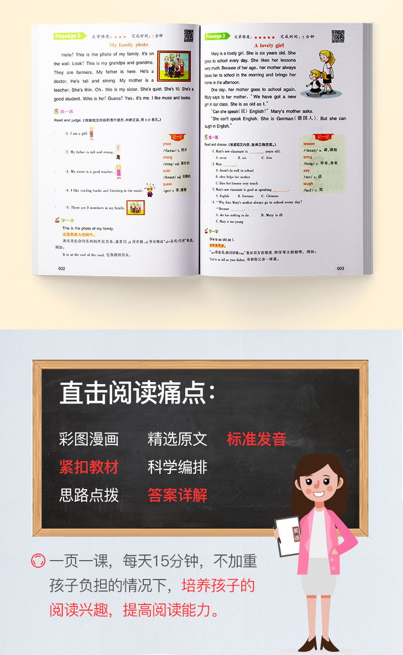 【扫码听原文】全国百所重点小学名师推荐,漫画解读,四年级阅读训练100篇,阶梯强化训练同步,每天5分钟,强化训练,提高孩子英语阅读能力!!