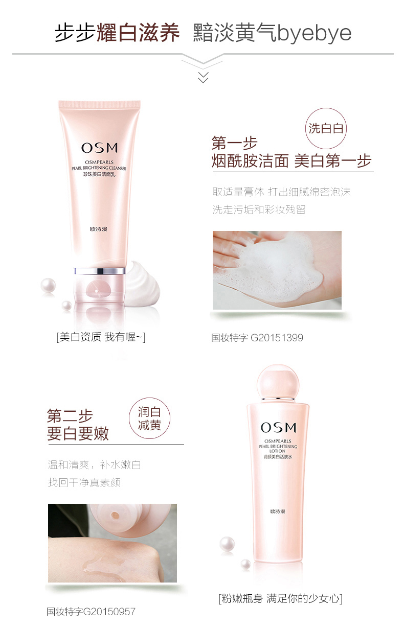 欧诗漫旗舰店补水套装美白保湿淡斑水乳学生党护肤化妆品正品全套