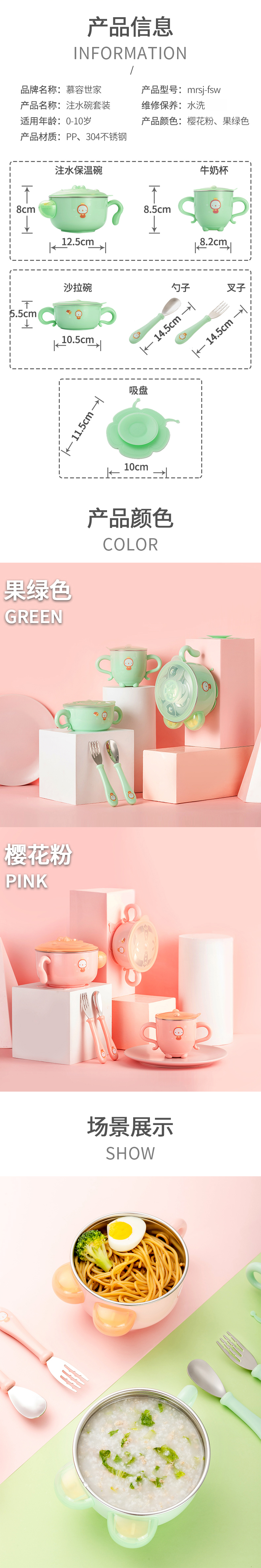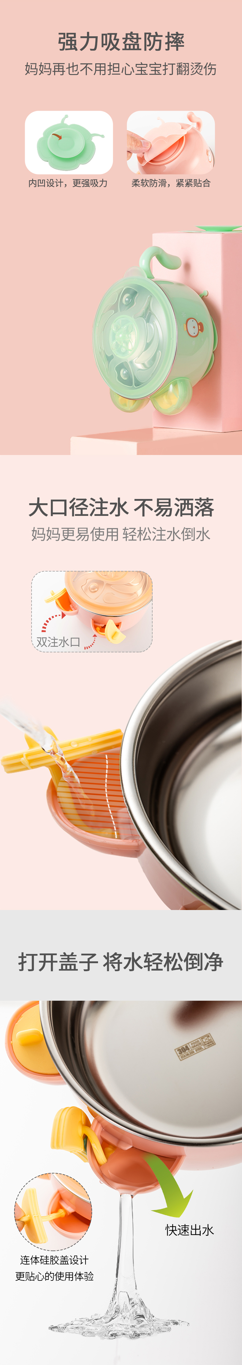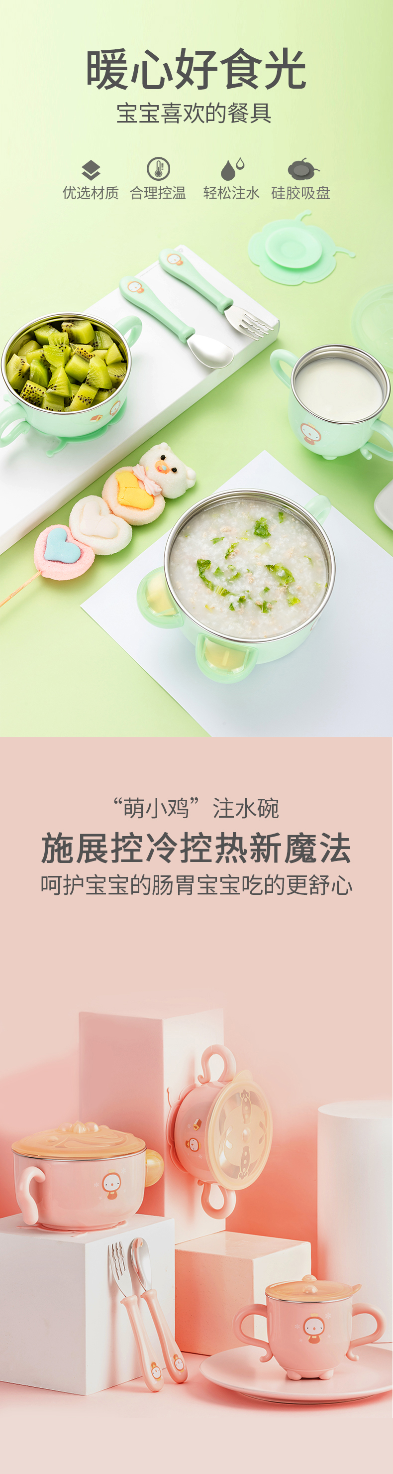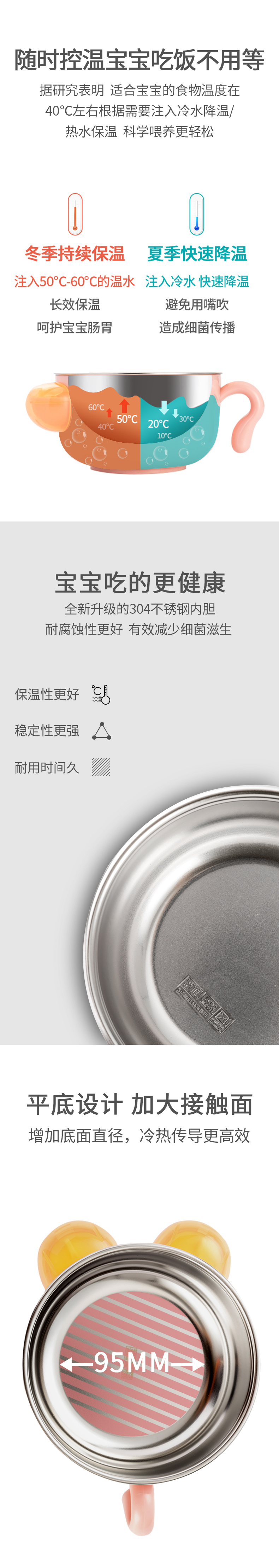 【暖心好食光】宝宝注水保温碗,优质材料,合理控温,轻松注水,硅胶底盘,宝宝随时吃饭,不用等,全新不锈钢内胆,耐腐蚀性更好,有效减少细菌滋生,宝宝吃的更健康,为了宝宝,赶紧下单吧。