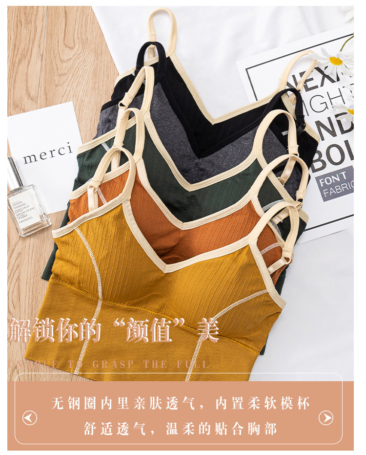 夏季性感交叉细带美背文胸无钢圈聚拢内衣女镂空露肩背蕾丝内衣女