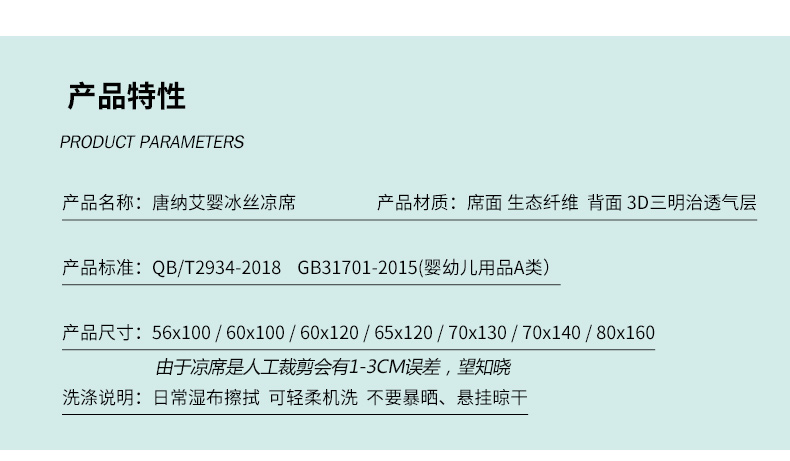 【唐纳艾婴】婴儿凉席,舒爽不粘腻,凉而不冰,光滑无毛刺可裸睡,舒适透气,无荧光,可手洗机洗,不变形,方便收纳,包装。给宝宝一个清爽的夏天!