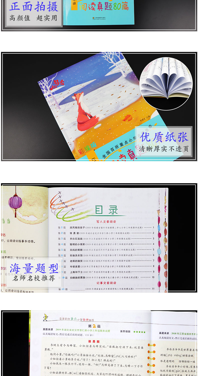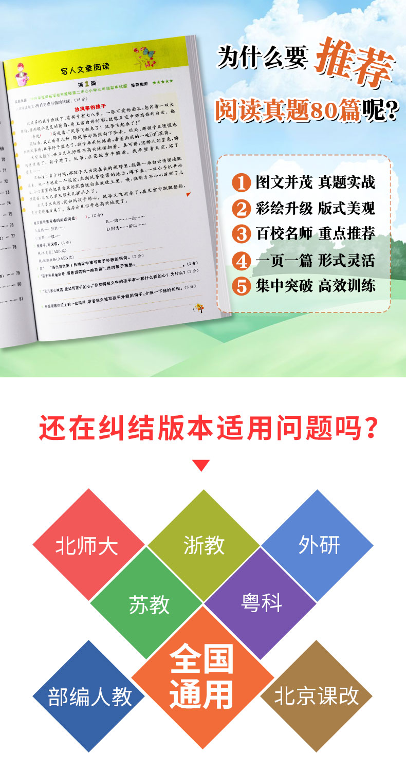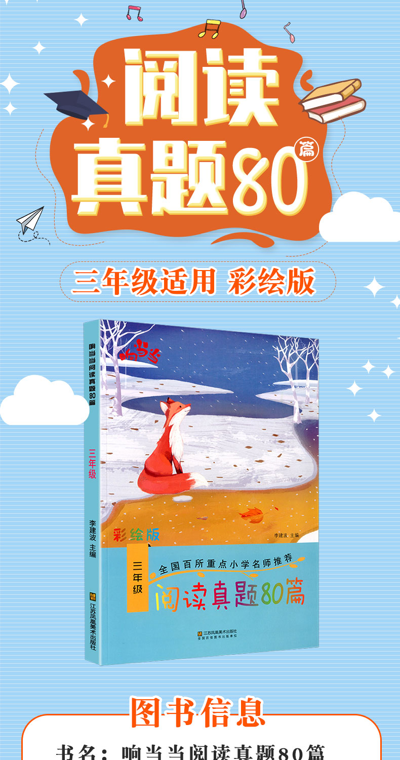 【赠培优计划】彩绘版,三年级阅读真题80篇,语文同步练习册测试题拓展,集中突破,强化训练,开发孩子阅读写作能力!