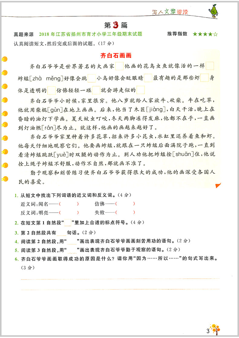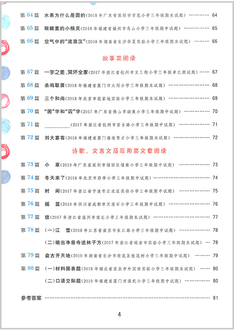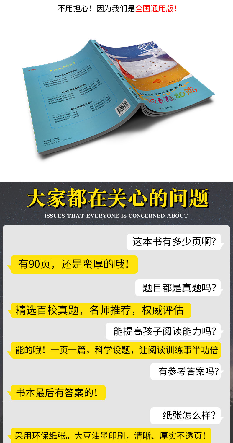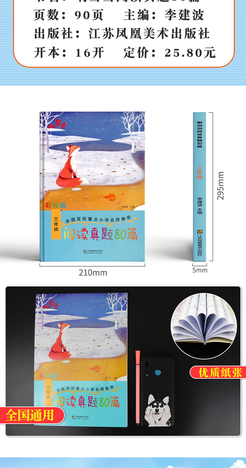 【赠培优计划】彩绘版,三年级阅读真题80篇,语文同步练习册测试题拓展,集中突破,强化训练,开发孩子阅读写作能力!
