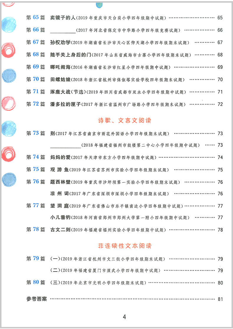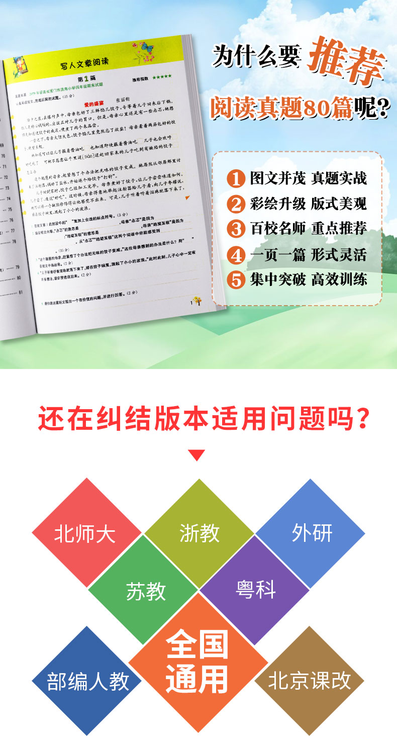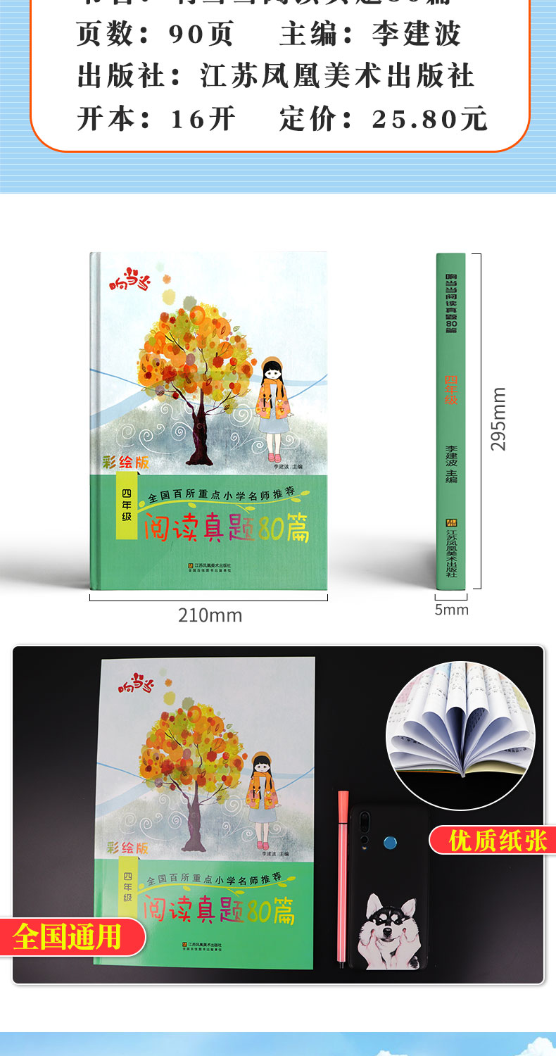 【赠培优计划】彩绘版,四年级阅读真题80篇,语文同步练习册测试题拓展,集中突破,强化训练,开发孩子阅读写作能力!