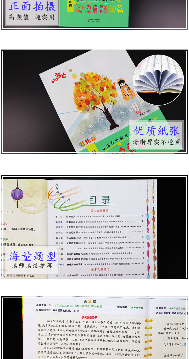响当当 阅读真题80篇四年级/4年级 小学生上册下册语文同步练习册测试题拓展阶梯阅读理解专项强化训练2019版课内外课文教材辅导书